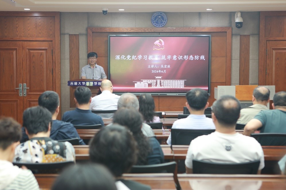 为深入学习贯彻习近平新时代中国特色社会主义思想和党的二十大精神,压实意识形态工作责任制,加强党纪学习教育,6月26日下午,黄色网站 特邀请马克思主义学院吴宏政教授为全体教工党员进行意识形态暨党纪学习教育专题讲座。