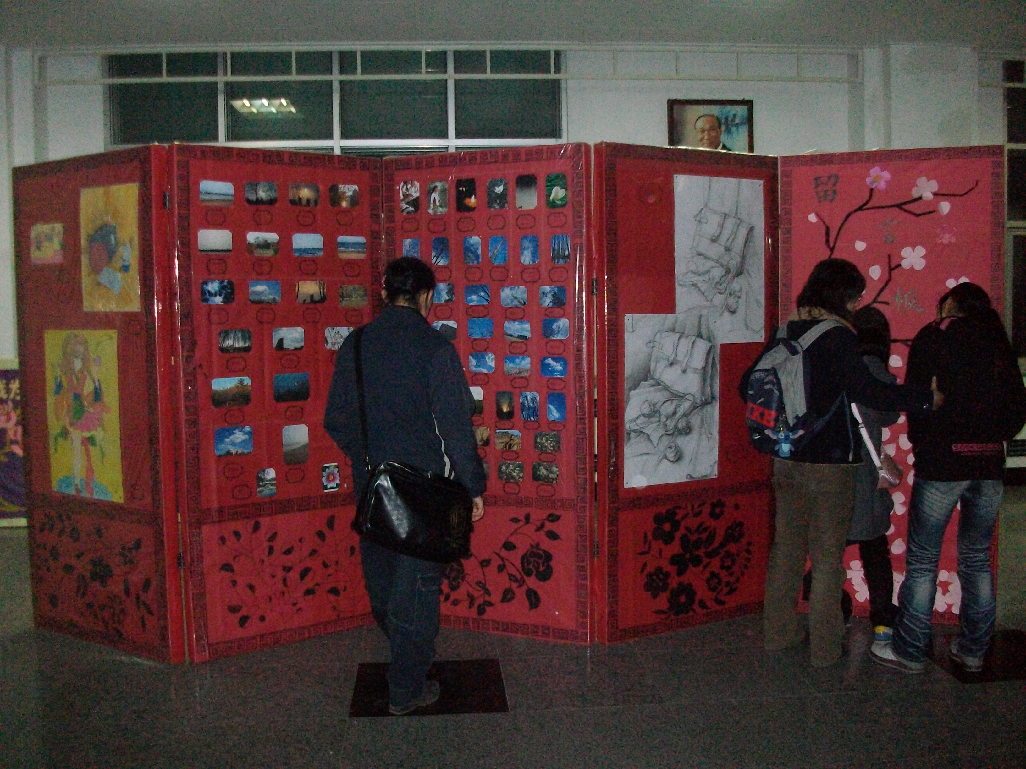 学生会宣传部于4月26日在逸夫教学楼大厅举办了第七届“展鸿艺术节”,在精美的展板上展出了我校学生优秀的书法、绘画及摄影作品。