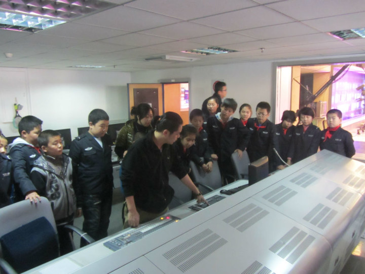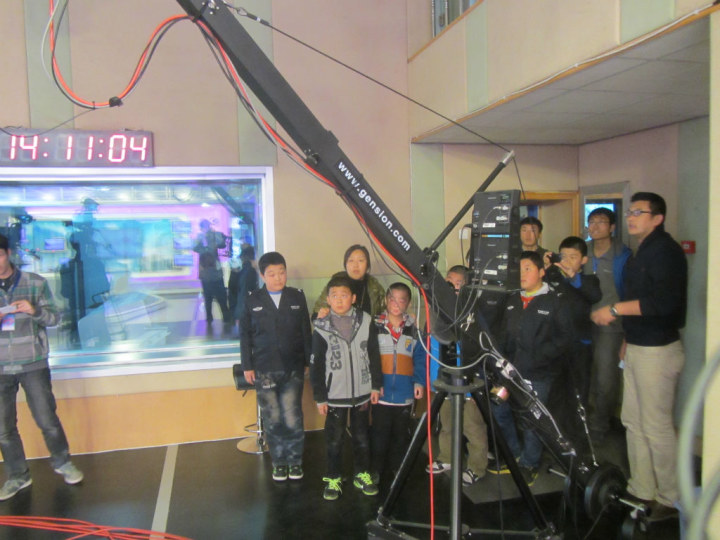 志愿者带领小学生参观摄影棚