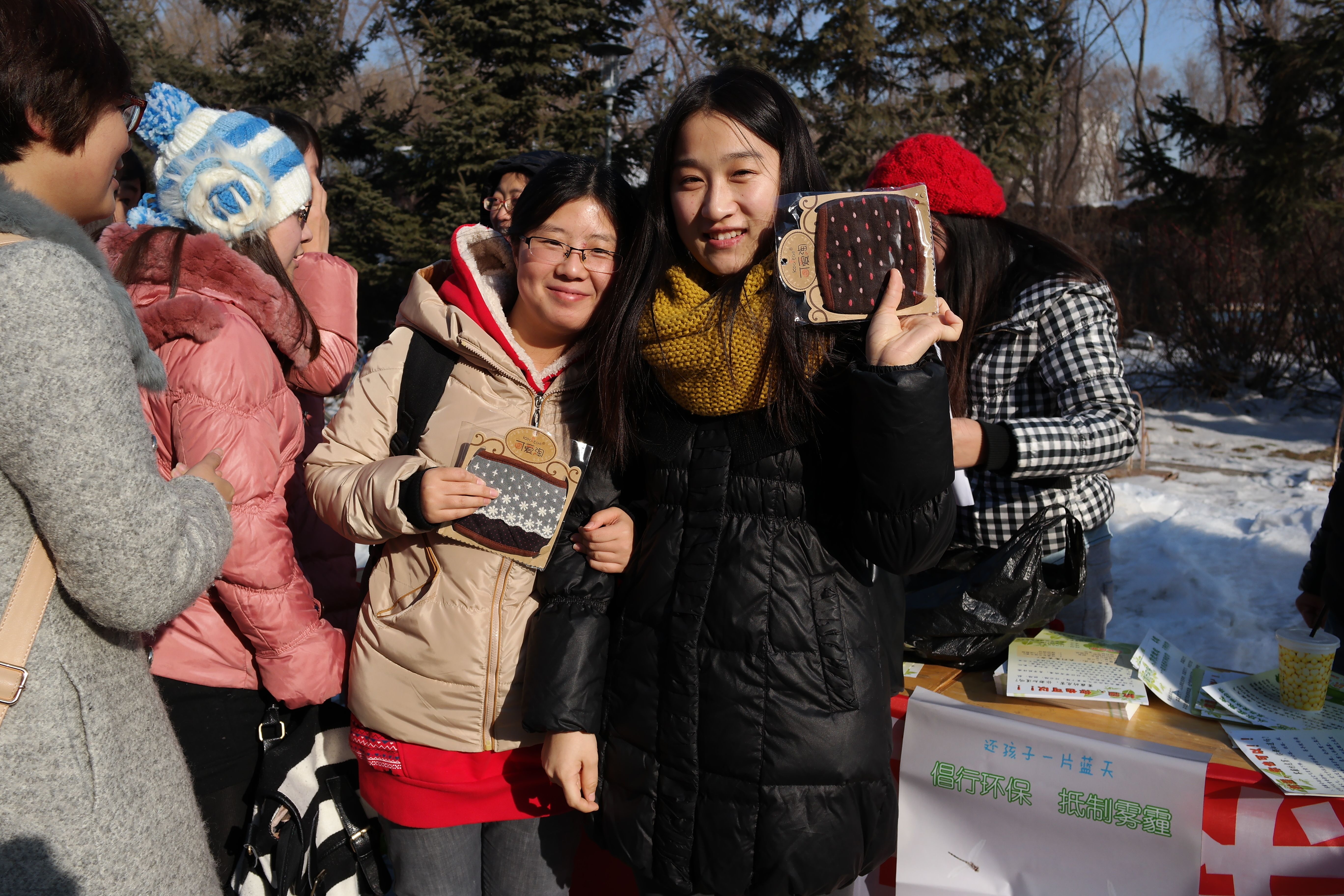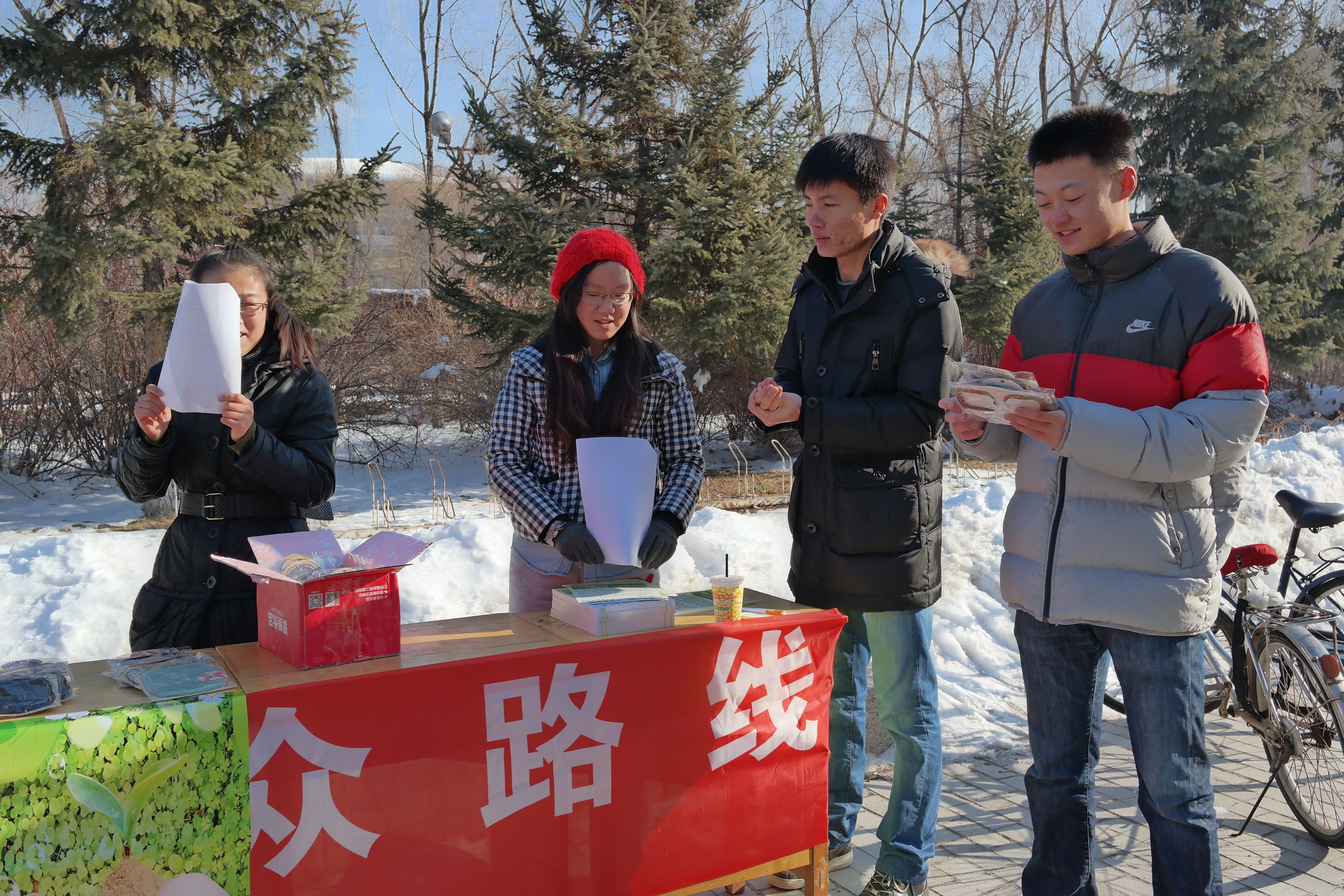天气虽冷,但同学们的参与热情极高。活动现场,大家纷纷前来答题,领取倡议书,场面甚是热闹。