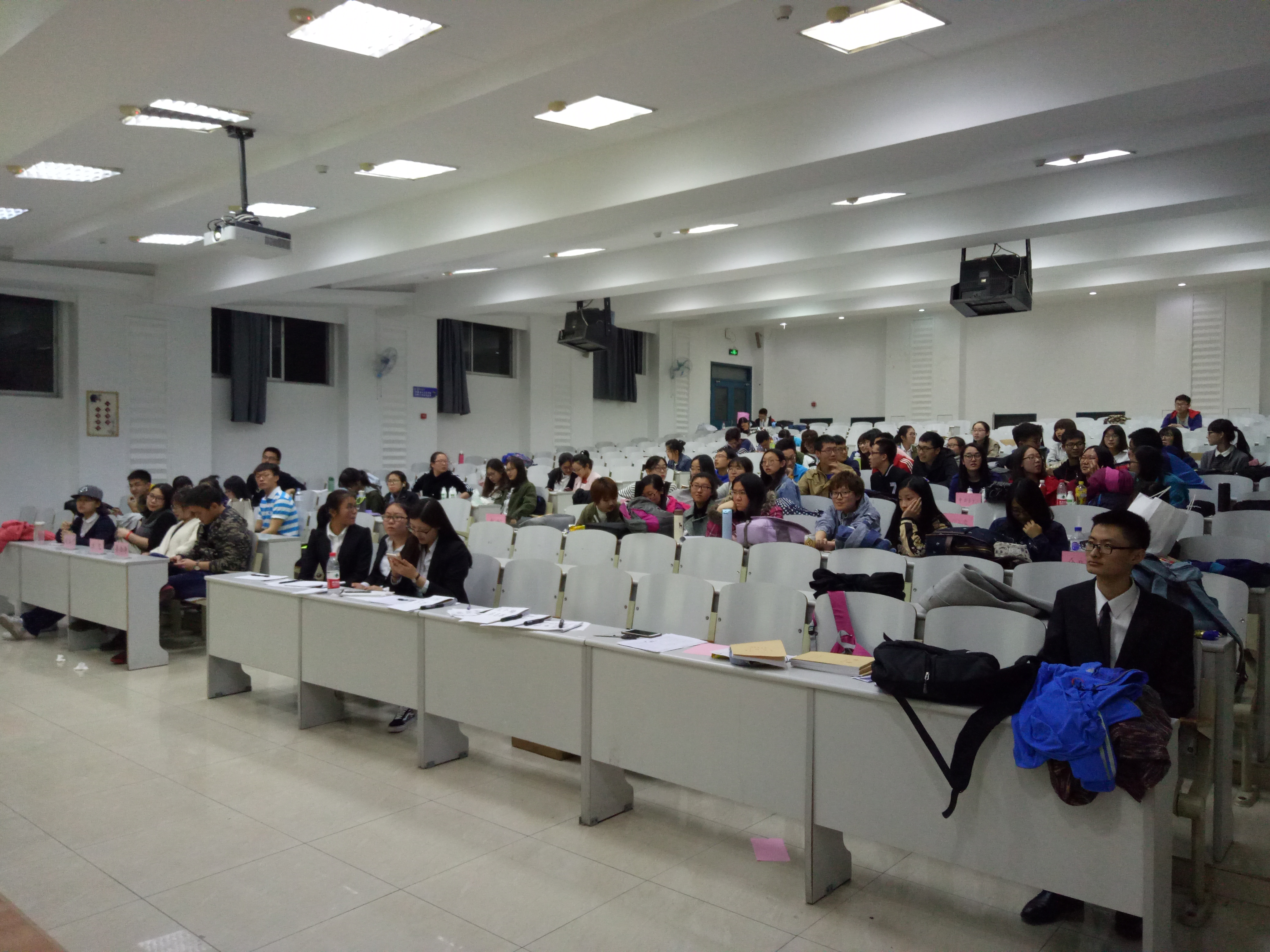 活动共分为四个环节,默契大比拼、你来比划我来猜、歌谣大挑战和关键词小曲库。默契大比拼作为第一个环节充分调动了大家对比赛的积极性。室友四人同时回答PPT亮出的题目,裁判通过他们的回答来判断四人的默契程度。PPT上的问题足以见主办方对本次活动的用心。经过第一轮的比拼,各个队伍的分数不相上下。比赛就这样紧张激烈地进行着。第二环节的你来比划我来猜选手们用尽了浑身解数,现场幽默感十足。第三环节选手们挑战歌曲。在挑战加速歌曲、混音歌曲和空白歌词时各位选手见仁见智,不时赢来观众热烈的掌声。三轮游戏结束后,主持人与观众互动,进行关键词曲库小游戏。主持人给出关键词,唱出含有此关键词的歌曲的观众可获得精美小礼品,大家都踊跃参与。在计分完成后,4019与4037寝室比分相同,进入加时赛环节,轮流回答有关吉大的相关问题,经过激烈的角逐后4037寝室胜出。最终宿舍编号为4014的寝室获得一等奖,4037和4040寝室获得二等奖,4011、4017和4019寝室获得三等奖。