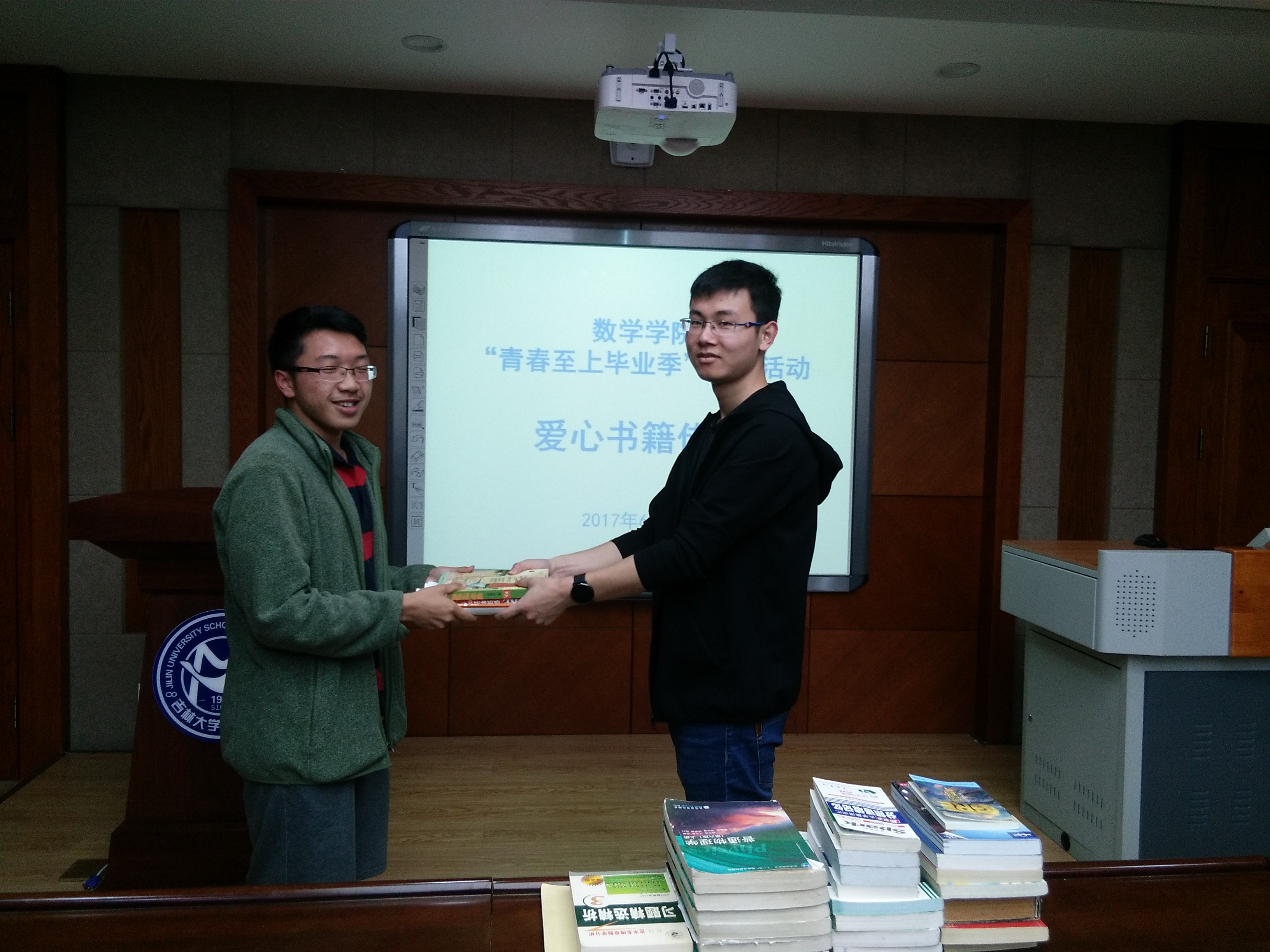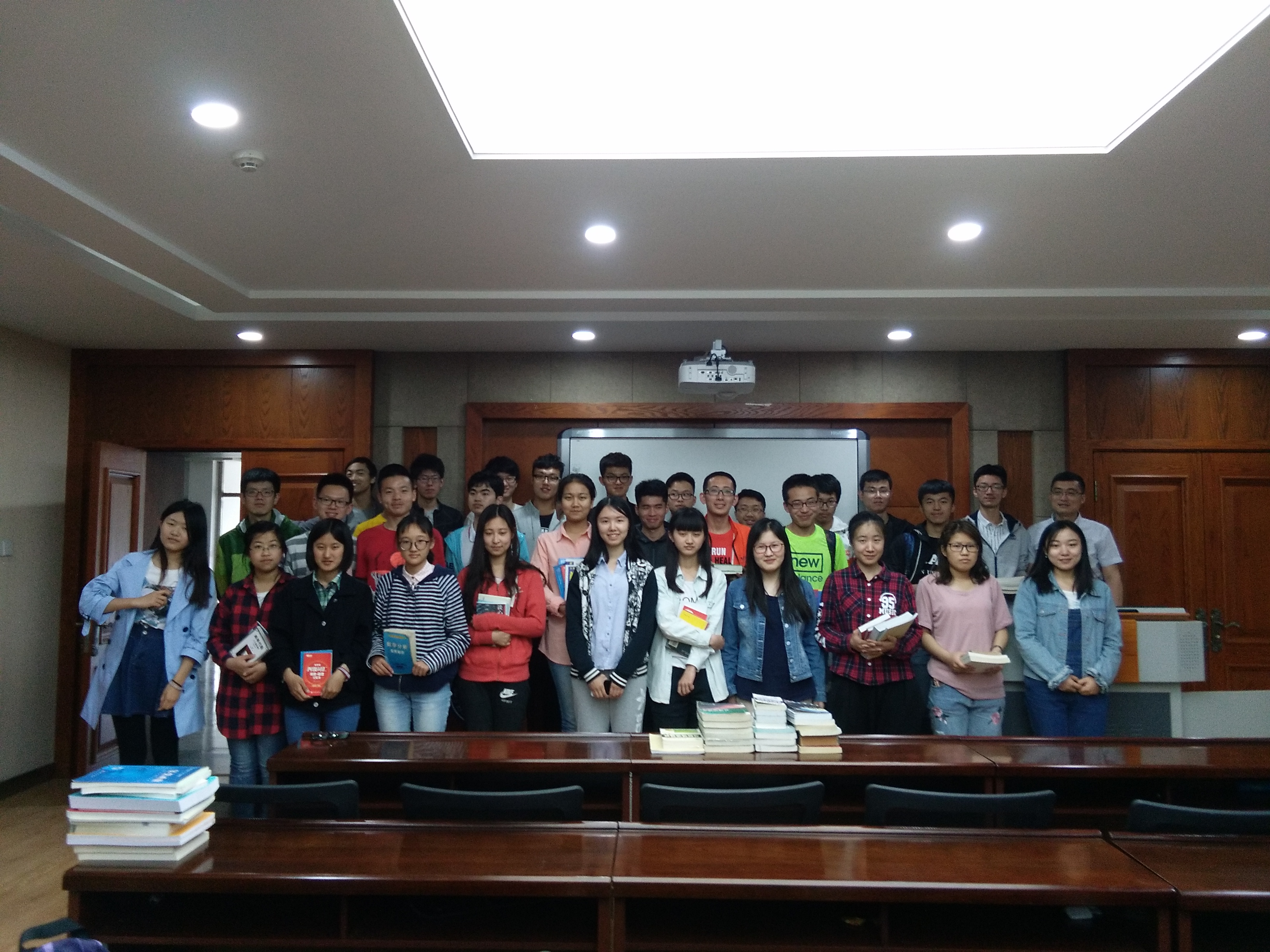 团委志工部于2017年6月9日在数学楼一楼报告厅组织了以“为了感谢身边最美的人,发现身边最美的角落,献给母校最感动的瞬间”为主题的图书赠予活动。