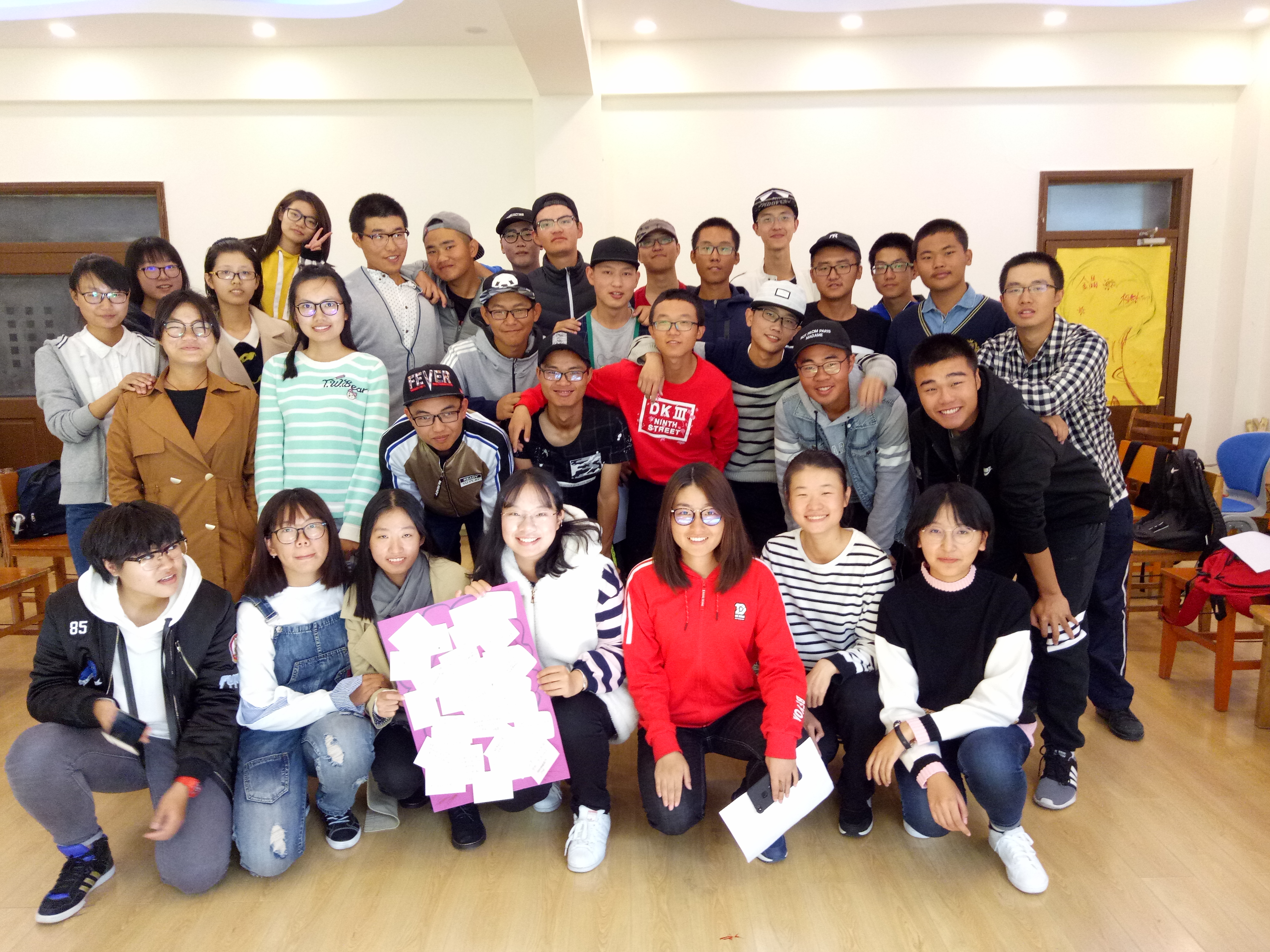 虽然活动结束了,但同学们的情谊才刚刚开始,心理班会只是一个大家彼此熟悉的契机,希望每一个班的每一个同学能相亲相爱,并努力实现自己的梦想,享受接下来美好的大学生活。