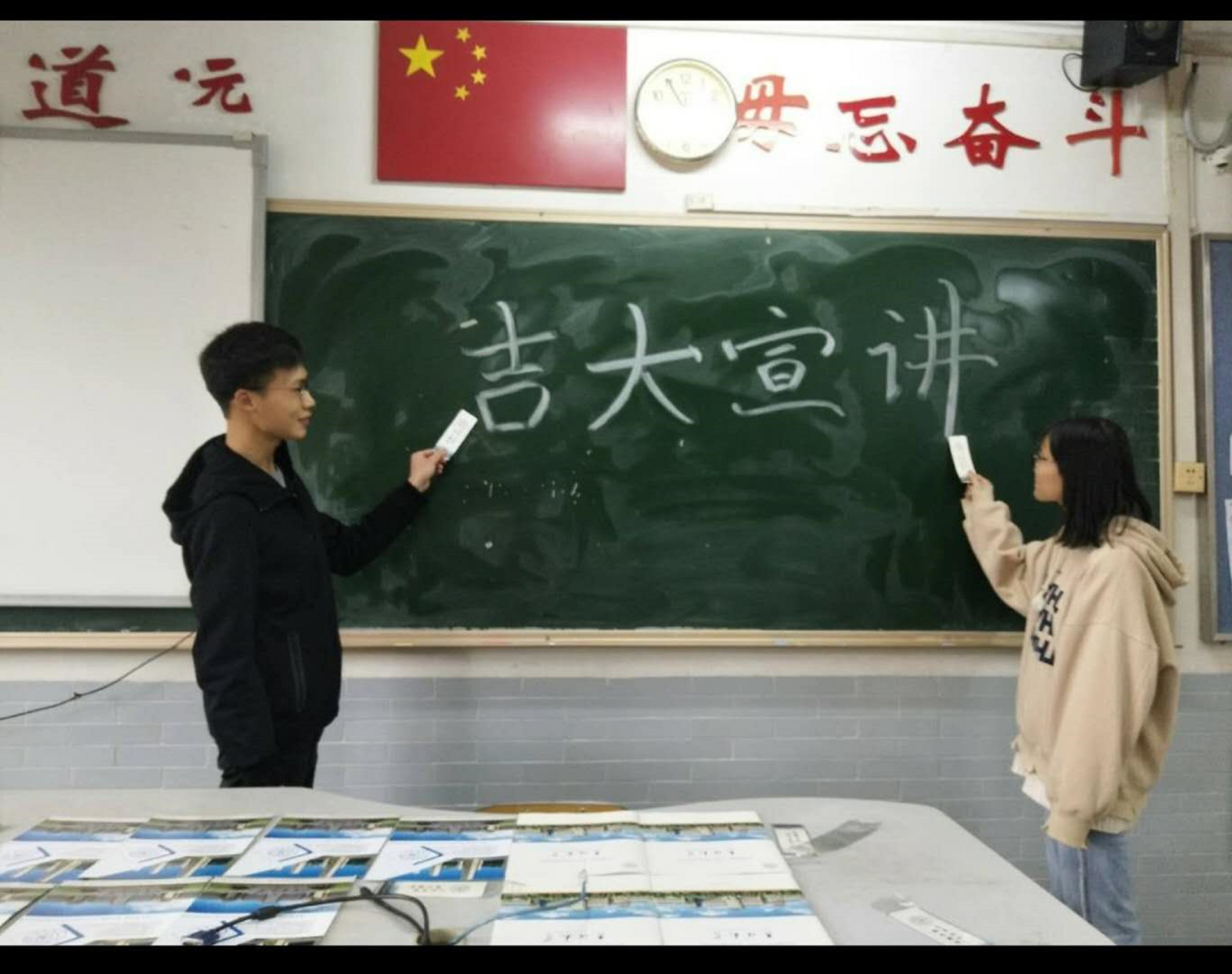 101705团支部在寒假期间派出六支宣讲队伍分别前往山东烟台经济技术开发区中学、成都郫都一中、山东省潍坊市临朐一中、石门中学、山西省郓城市康杰中学和河南三门峡市外国语高级中学参与宣讲。宣讲同学给所在高中的同学们发放吉大宣传册,在准备宣讲过程中家长和学生都十分认真的翻阅。以临朐中学为例,带领宣讲的同学带队在报告厅向母校高三学生宣讲吉大黄色网站