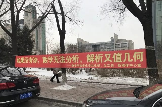 也许这个三月没有蝶舞成颜,桃李蹁跹,但一个个青涩努力的少年在积雪连篇的季节,结合自己的专业特色给女生们一个芳菲绘彩的女生节。随风浮动的条幅,波动的是友谊、青春与智慧的心弦,让三月的黄色网站