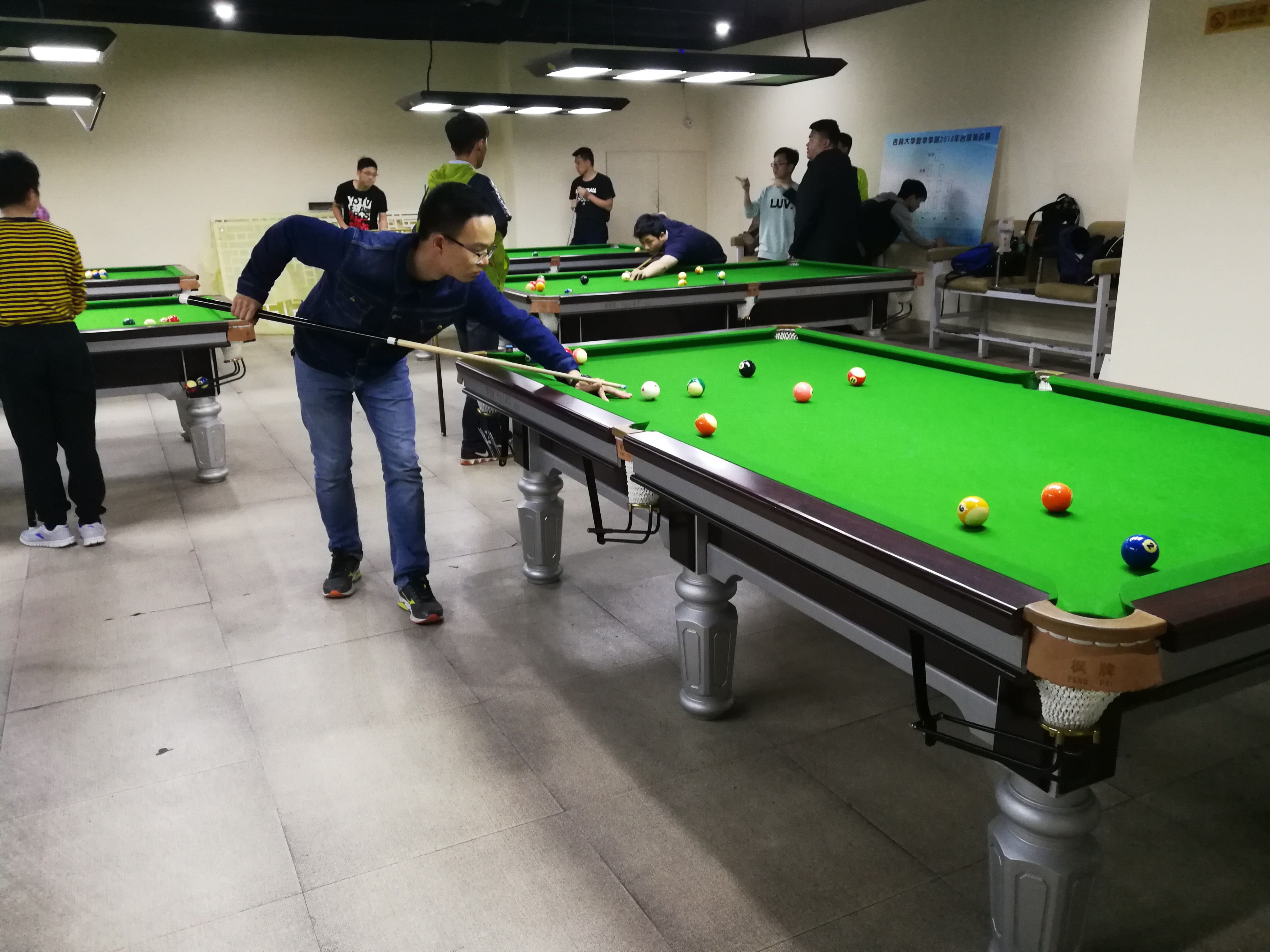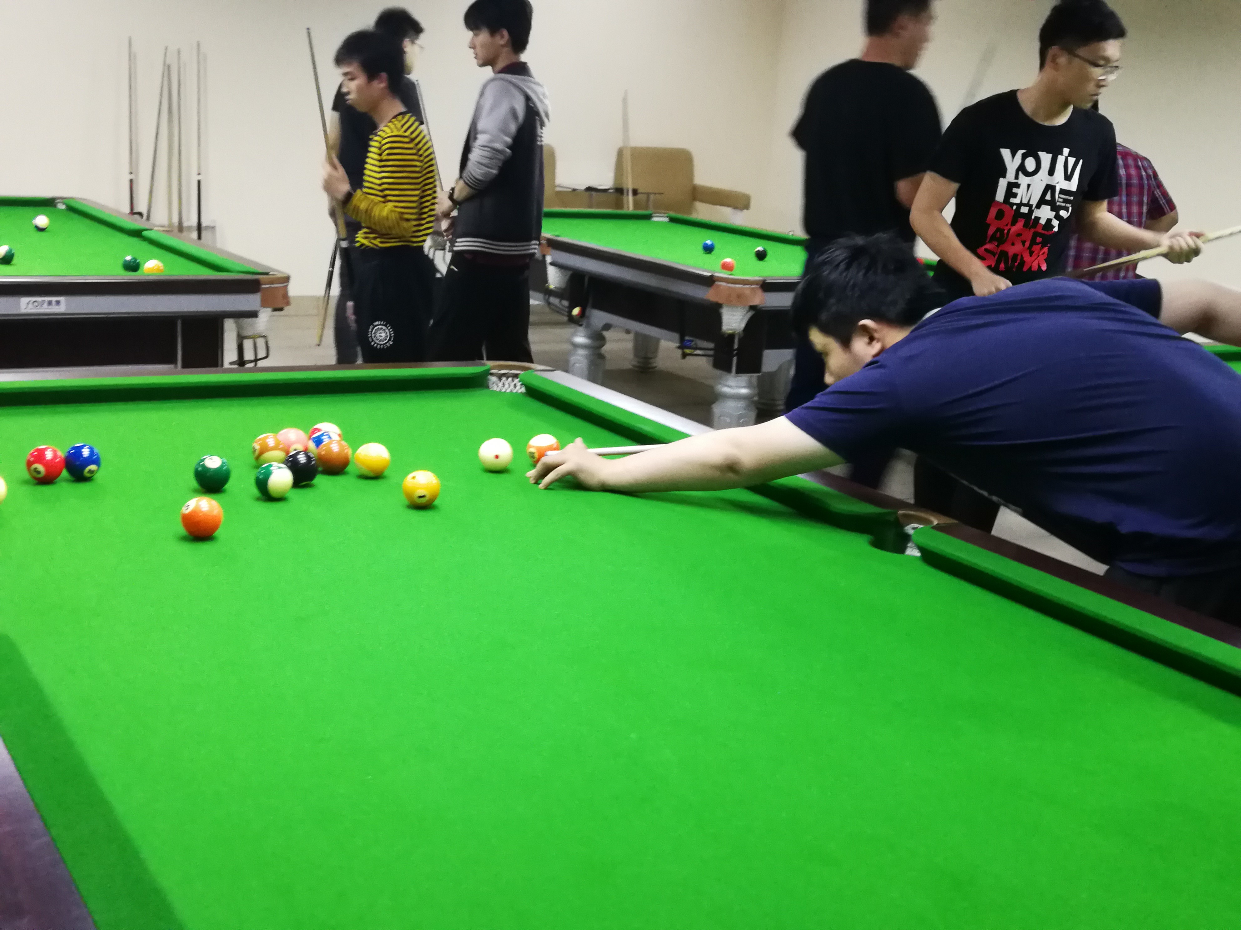 台球赛在日新楼四楼的台球厅内正式开始,首轮24进12与次轮12进6的比赛并无太大波澜,几大夺冠热门均轻松战胜各自对手晋级下一轮。