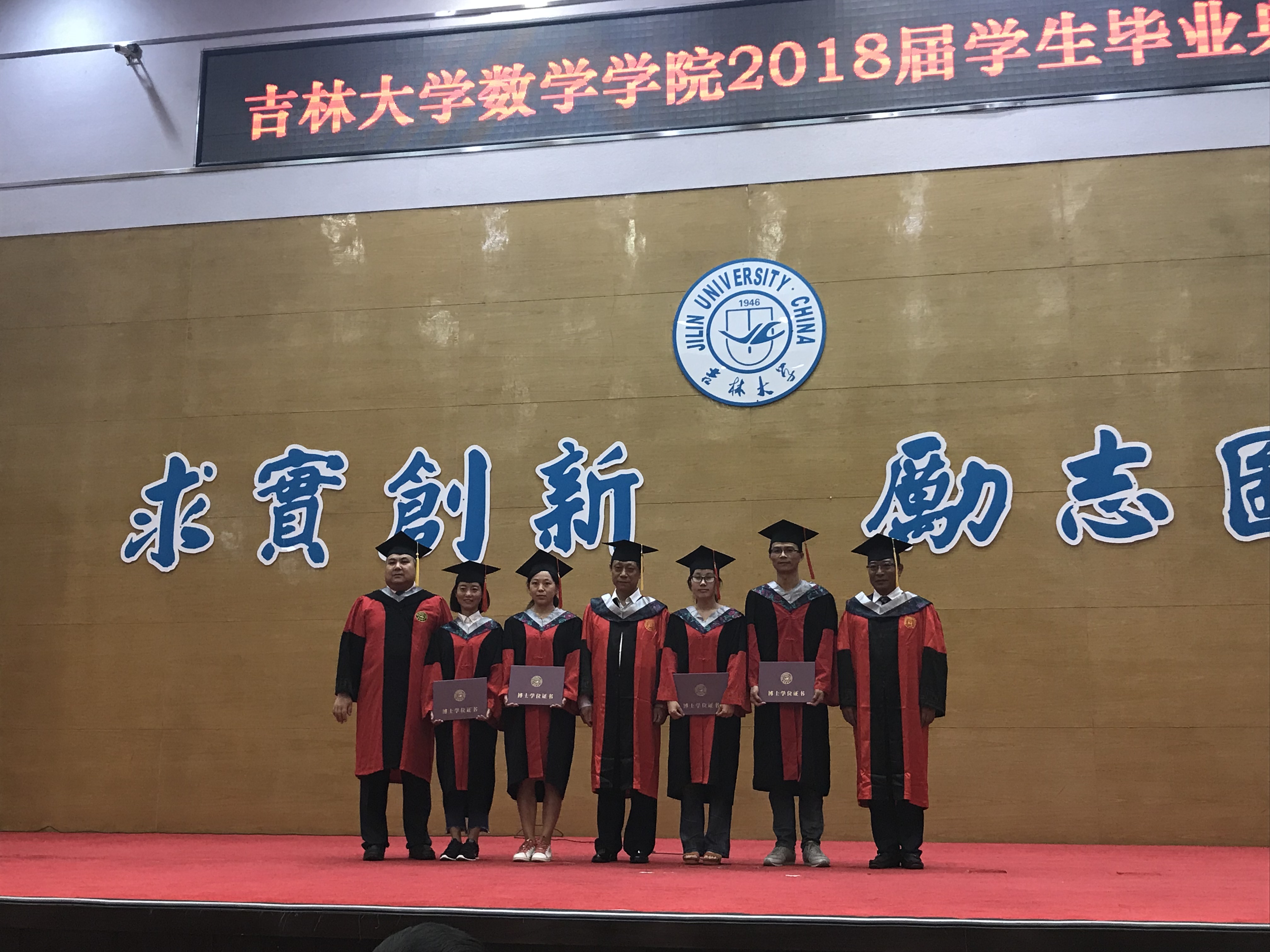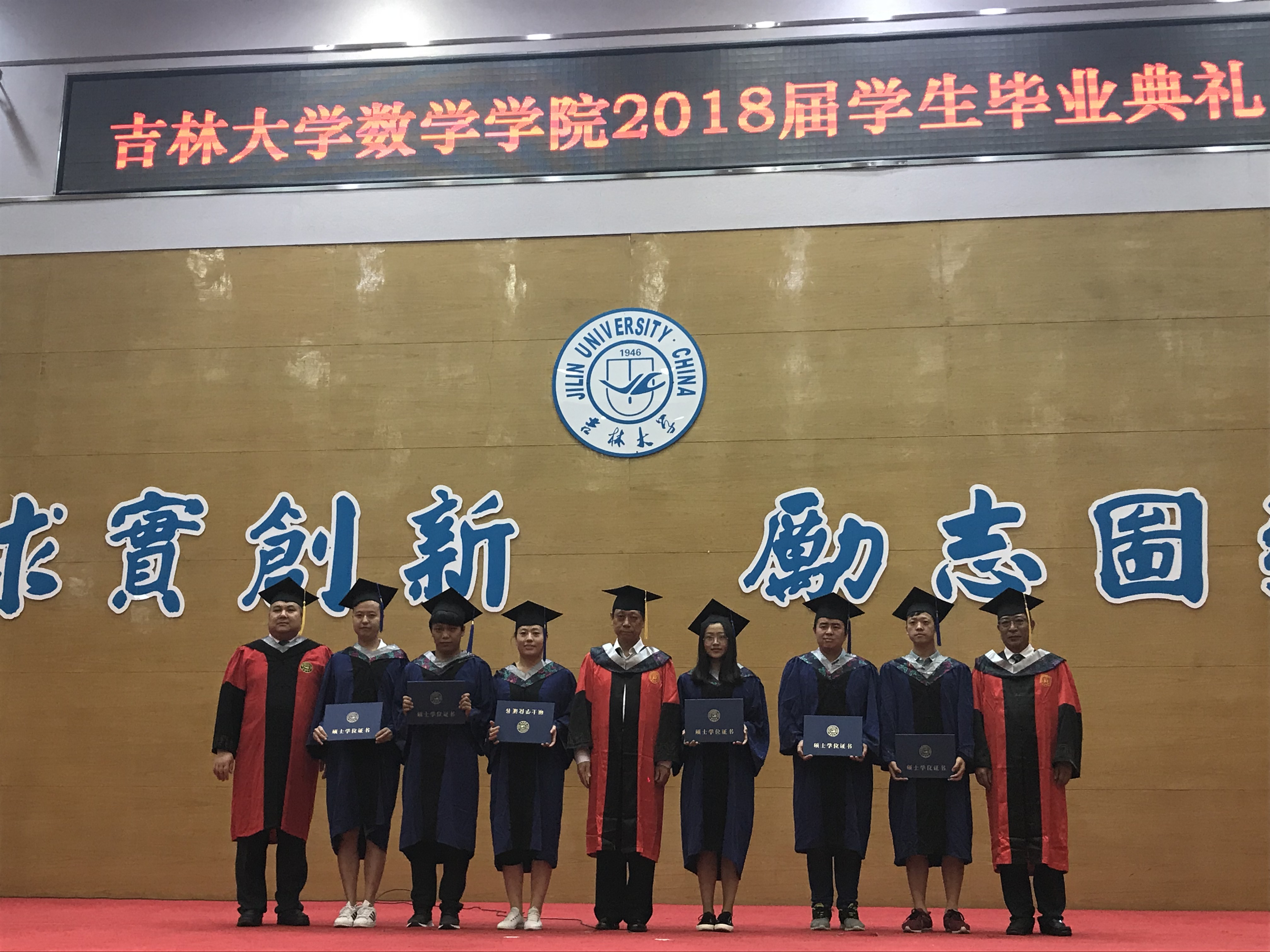 接着,数学学科学位评定委员会主席高文杰教授、副主席李辉来教授及王德辉教授共同为毕业生授予学位并颁发学位证书。