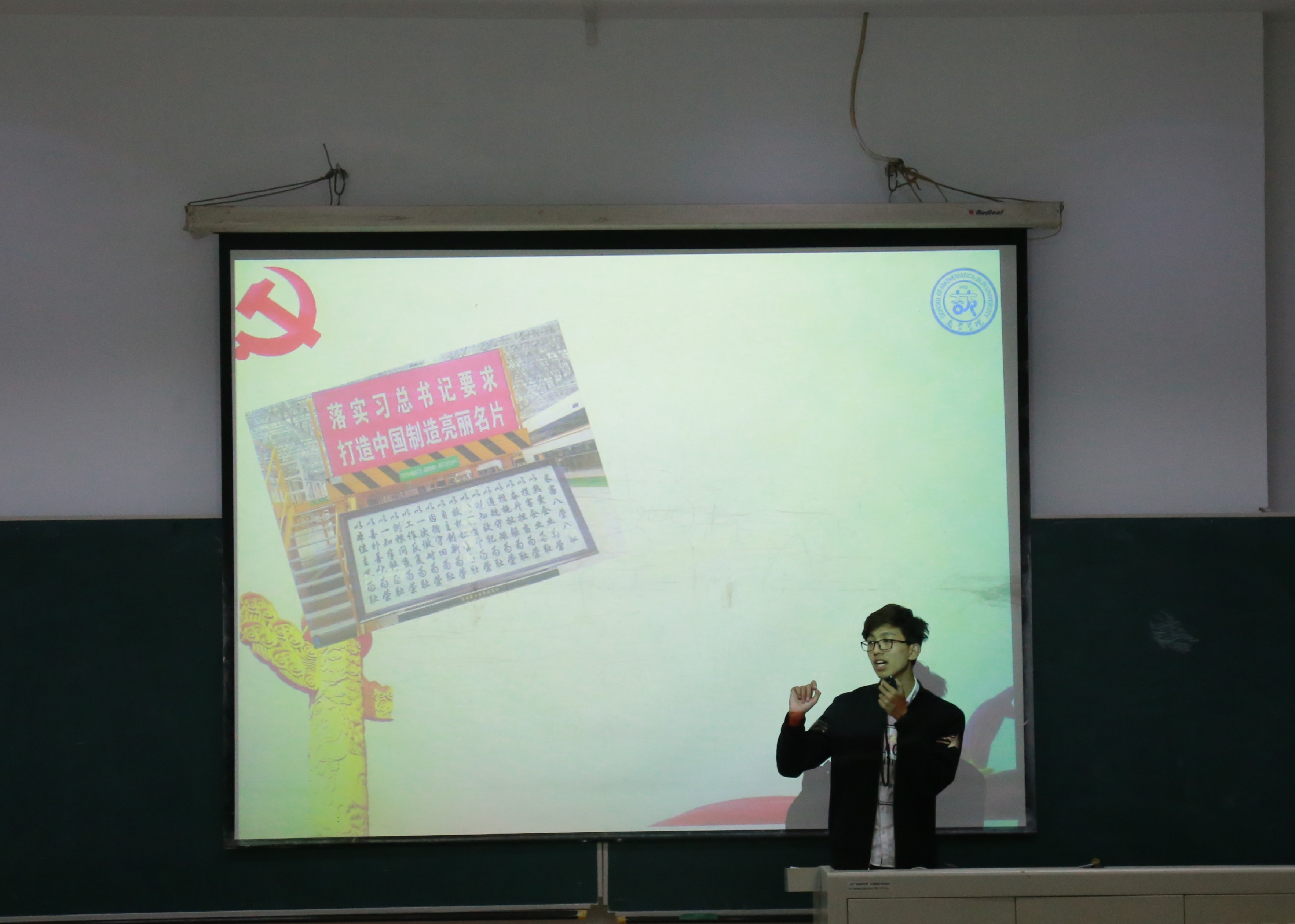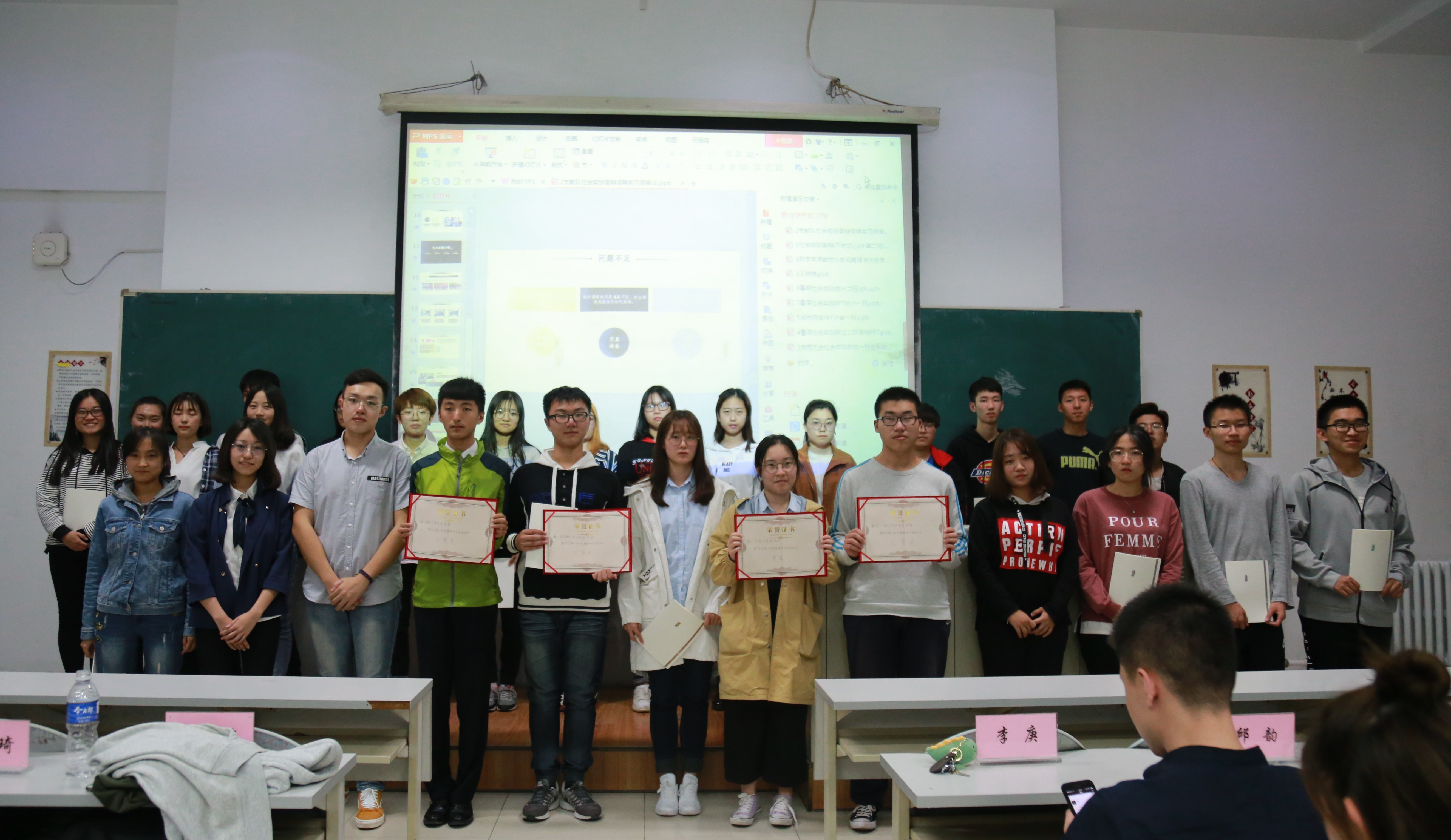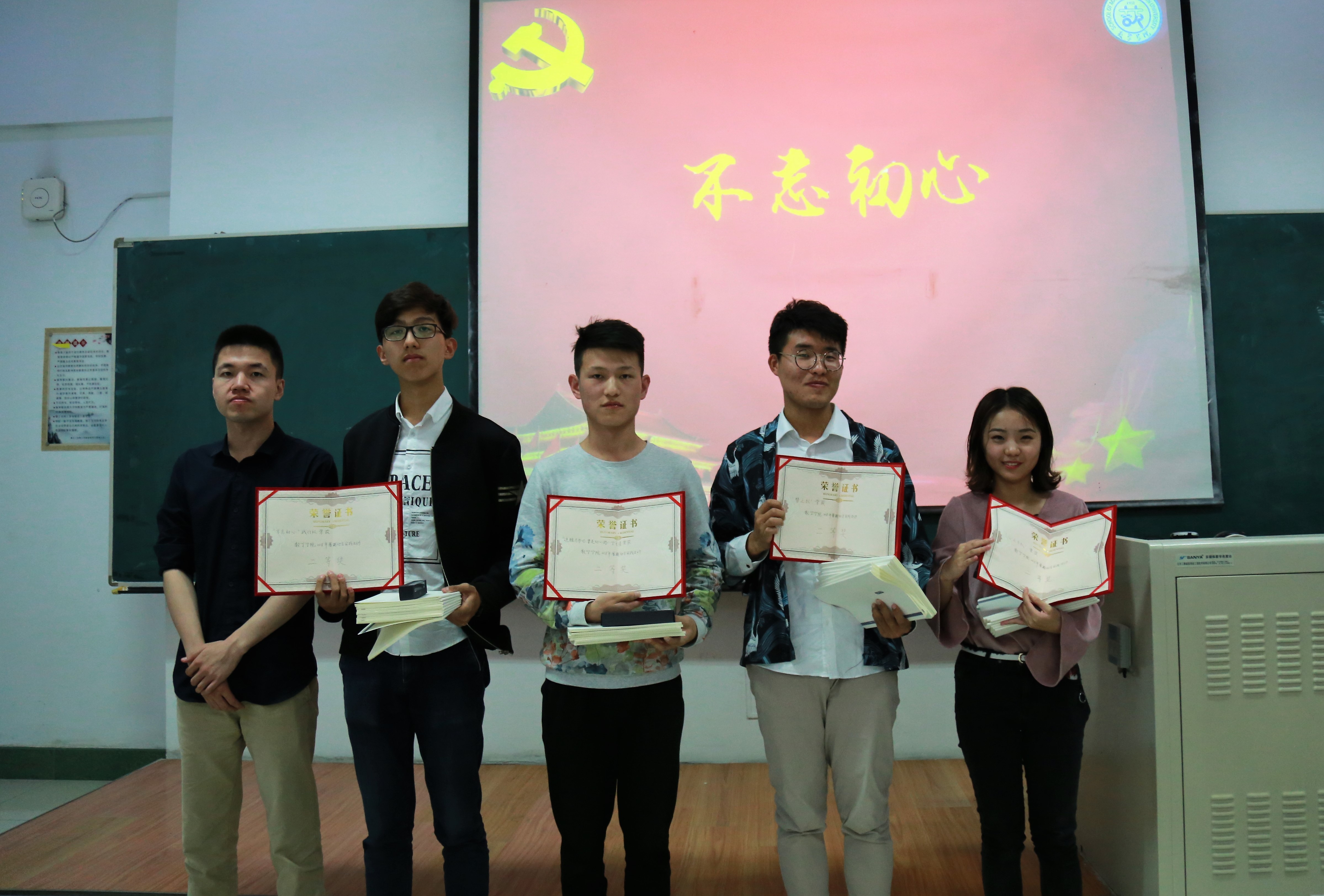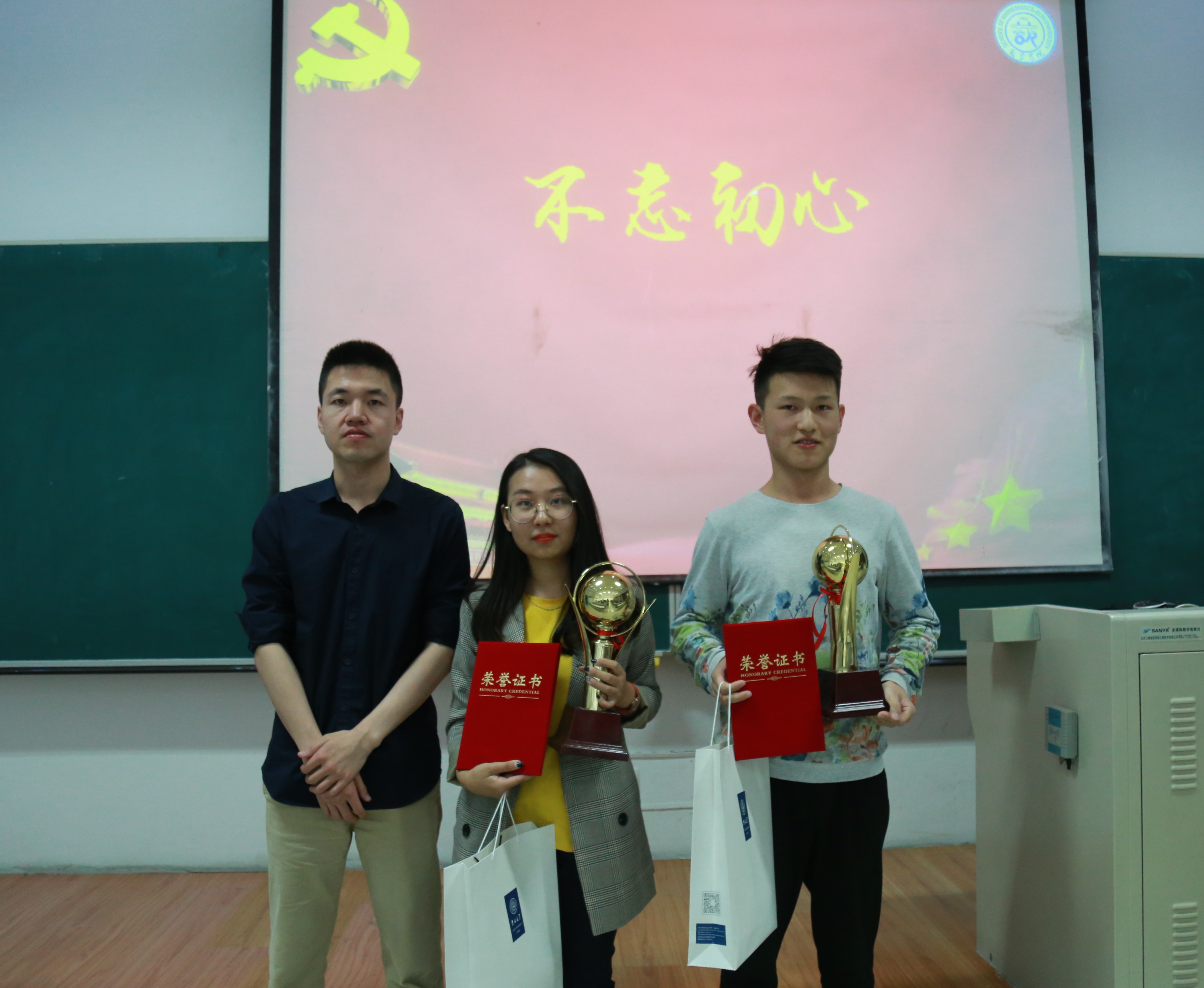 大会第二项:实践成果评比。在评比之前,先由主持人介绍了评比规则及奖项设置。评比规则:第一部分是活动前期黄色网站 微信公众号投票,该分数占最终结果的百分之三十。第二部分是评委团评选分数:李庚老师以及主席团成员作为评审团给各代表队打分,该成绩占百分之七十。接下来各实践队代表上台展示了他们的实践经历以及成果。综合两部分的分数,共评选出一等奖两名,二等奖四名,三等奖三名。一等奖:小“数”林支教团以及黄色网站 河南精准扶贫考察小组;二等奖:统计二班“心之小队”,计算一班“梦之队”,“追随总书记,重走初心路”学习团,计算二班“不忘初心”践行队;三等奖:数一&金数吉商志愿团、数应二班红色宣讲团 、统计一班爱心接力志愿者团。由团委书记李庚老师、团委副书记兼社团联合会主席郑旭东、团委副书记李潇琦、学生会主席邱韵分别为获奖队伍颁发奖杯,荣誉证书以及奖品。