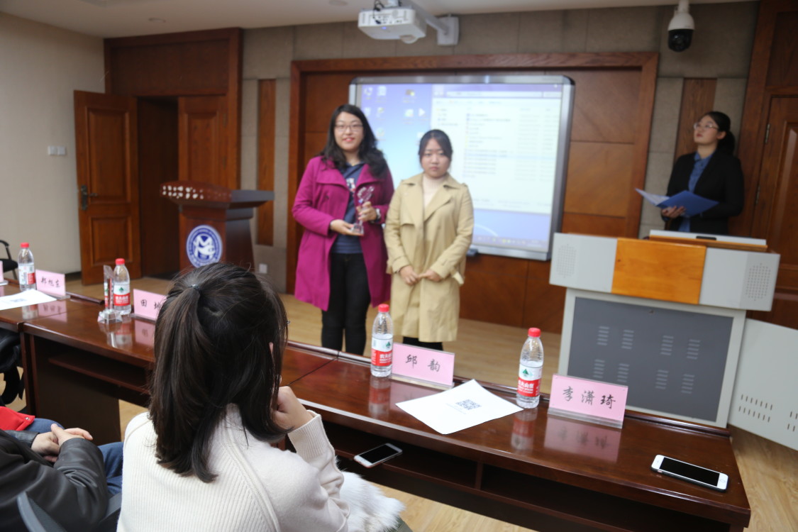 团委副书记兼社团联合会主席赵雯晗为吉林省桥牌协会颁发特殊贡献单位奖,学生会主席邱韵为长春市桥牌协会颁发特殊贡献单位奖,由团委副书记李潇琦为刘曼怡颁发特殊贡献个人奖。再接着,资深桥牌达人刘曼怡为我们讲解了基础桥牌知识,桥牌到底该怎么玩。刘曼怡为我们到场的每个人都布置了在线桥牌练习,大家也都纷纷拿起手机下载app,然后开始试玩。刘曼怡带着台下的同学们分析每个练习的出牌策略,让我们从对桥牌的一无所知到成为入门新手。