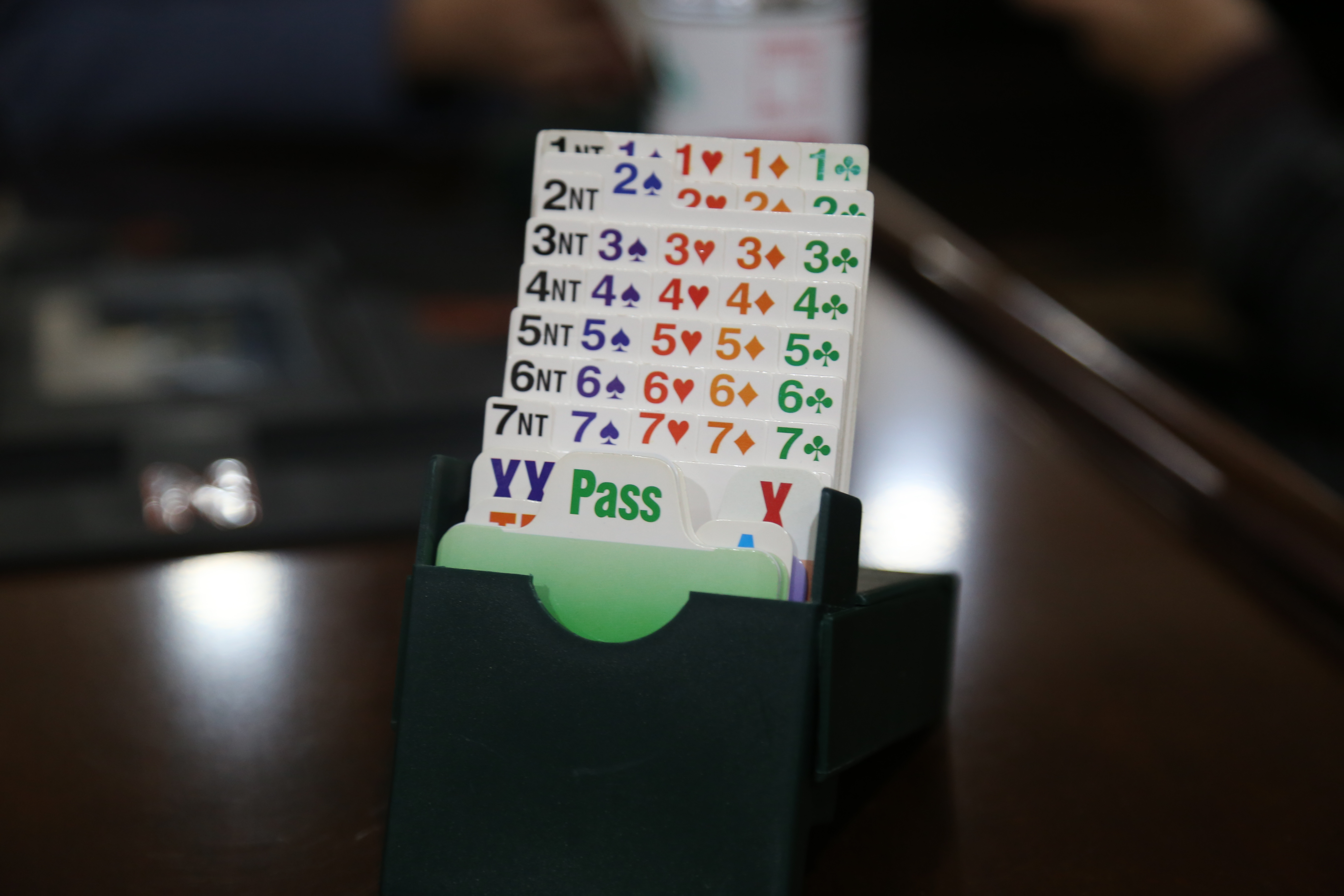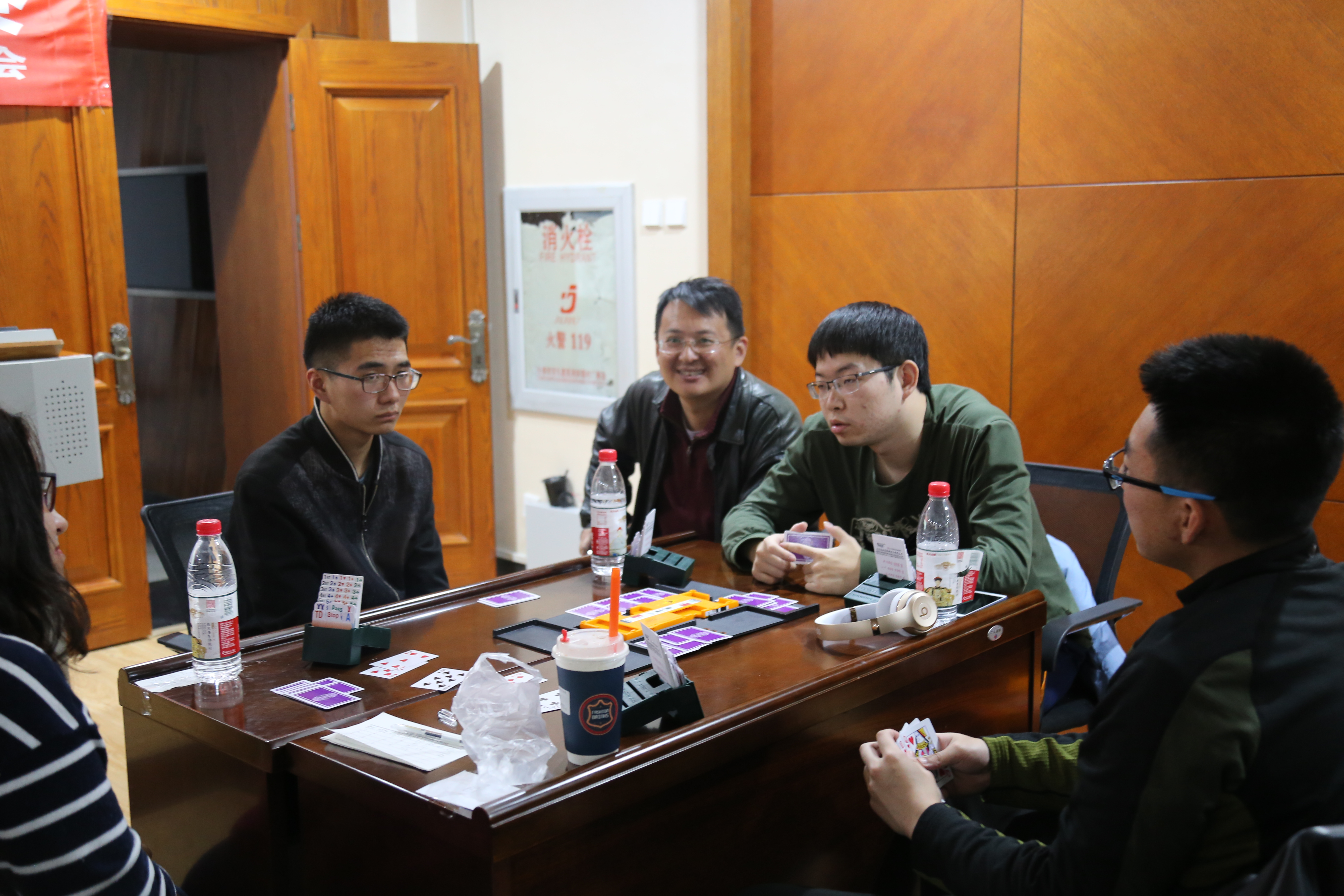 活动在下午1:30准时开始,首先由主持人简单介绍比赛规则,宣布比赛开始。为增强趣味性,比赛设置了为没有丰富经验的新手参加的“牛刀小试组”和为经验丰富的参赛者准备的“大显身手组”。“牛刀小试组”的同学虽然是初次接触桥牌,却丝毫不惧,很快地投入到比赛中去;“大显身手组”的同学们玩起来更是得心应手,高手过招,其乐无穷。