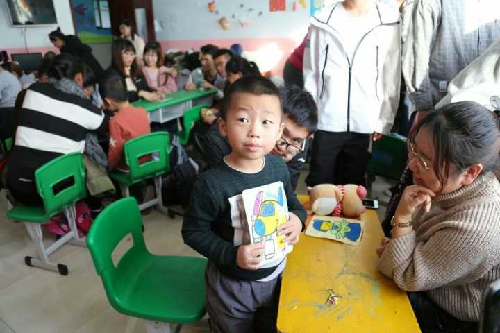 首先,工作人员为每位孩子准备一个帆布袋,志愿者们和孩子们一起用事先准备好的水彩颜料和彩色记号笔在帆布袋上创意涂鸦,勾勒出属于自己的天地。在这个帆布袋上,孩子们可以用彩笔尽情表达出自己的想法,志愿者们更加可以通过涂鸦间接地和孩子们沟通。一个小小帆布袋,不仅可以表达志愿者对孩子们的祝福,也为志愿者和孩子们的心架起一座沟通的桥梁。接着,工作人员和志愿者和孩子们进行了“我的世界”搭积木、一起折纸拼拼图,你唱我跳等游戏活动。最后,志愿者与孩子们合影留念,并将提前准备的小礼物和与孩子们共同涂鸦的帆布袋留给孩子们作为纪念。到此,活动圆满结束。