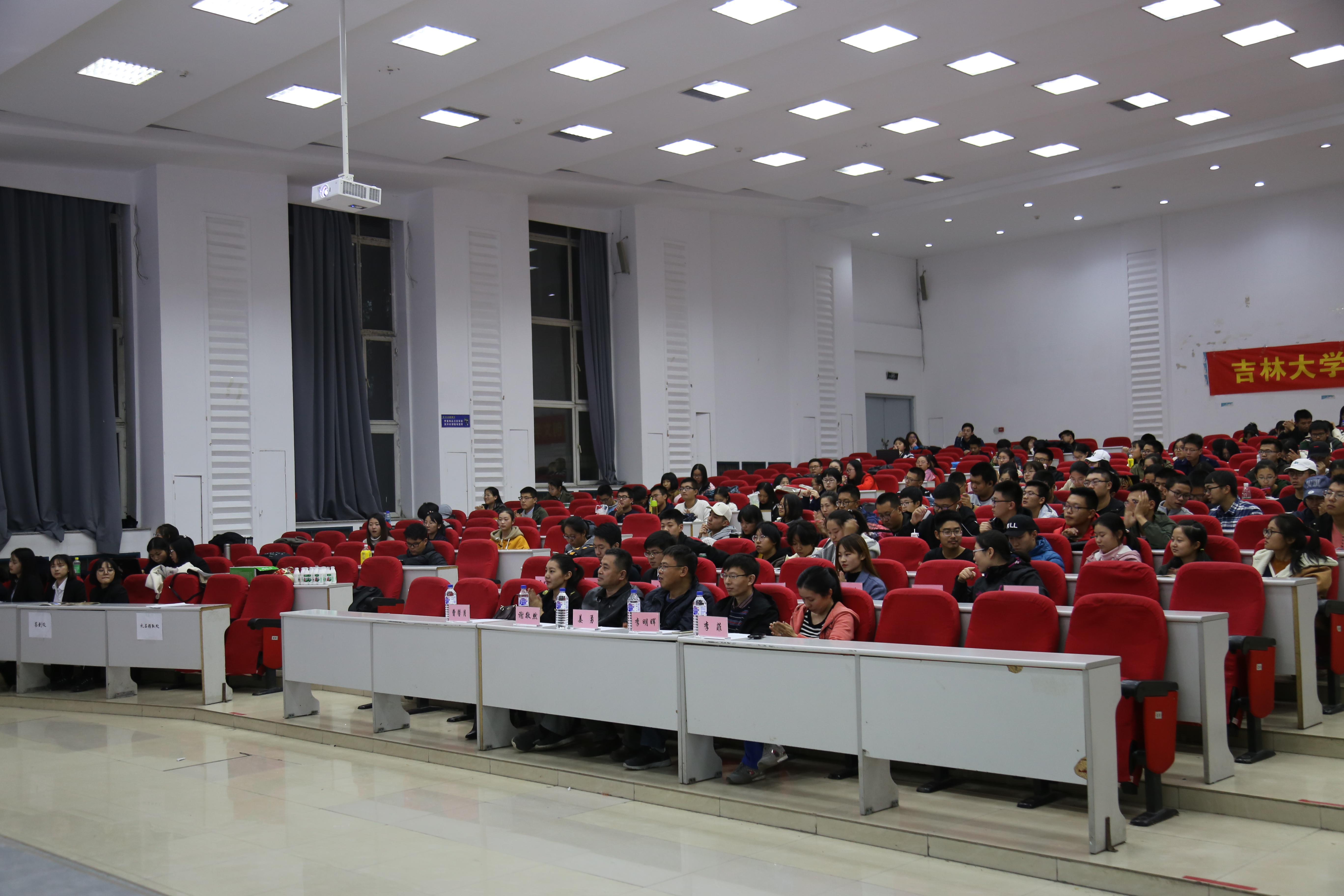 谢敬然老师,曹馨月老师。活动有幸请李明晖老师上台与同学们分享了自己与文学的不解之缘,老师向同学们生动地讲述了自己对于文学的看法,以及文学与生活之间的联系。老师的一席话,让同学们对文学有了新的见解与思路,也对于文学这一辞藻有了更为深刻的认识。同时,活动主办方期望杂志社社长李兹谦也上台向同学们介绍了本次活动的方针与主题,李兹谦鼓励同学们跻身与文学创作的行列之中,用自己的身心去感受文学的魅力。