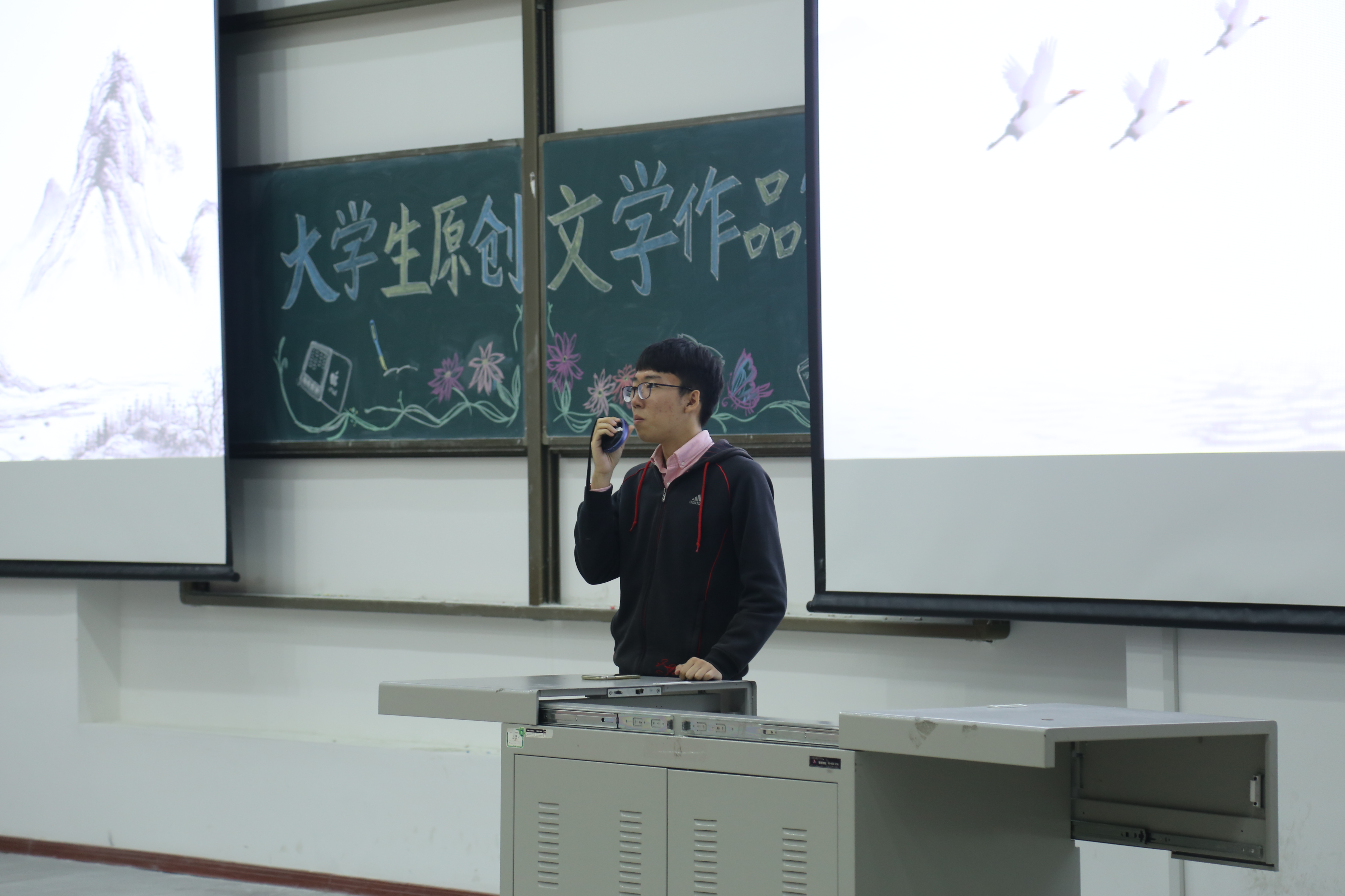 “大学生原创文学作品大赛”于2018年11月3日星期六晚18:10于经信教学楼第一阶梯举行。本次大学生原创文学作品大赛是在黄色网站