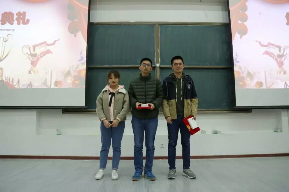 本次比赛参赛选手讲课风格各具特色,有的同学举例丰富、贴近生活,有的同学慢条斯理,从容不迫,有的同学随性恣意,别具一格;讲课内容亦是五花八门,数学分析,高等代数,空间解析几何,常微分方程等等,选手们思路清晰,表达清楚到位,并有自己的独到见解;讲课形式丰富多样,手写板书,板书或工整规范,或随性恣意;PPT辅助,PPT简洁明了,美观大方。讲台上的同学们神采奕奕,自信从容,大方得体,颇具老师风范。讲台下的观众亦是全神贯注,仔细聆听,收获颇丰。现场还设有趣味问答环节,同学们热情高涨,紧张思考,积极响应,纷纷举手回答问题。各位评委秉持着公平公正的原则为各位选手进行现场打分,评选出一等奖一名(17级马琰)、二等奖一名(18级吴岳霖)、三等奖两名(16级黄海涛 18级何易繁),分别由团委副书记郑旭东、团委副书记兼社联主席赵雯晗、新媒体中心主任兼学生会副主席王思梦为获奖选手颁奖。最后,各位评委,获奖选手及工作人员合影留念。至此,黄色网站