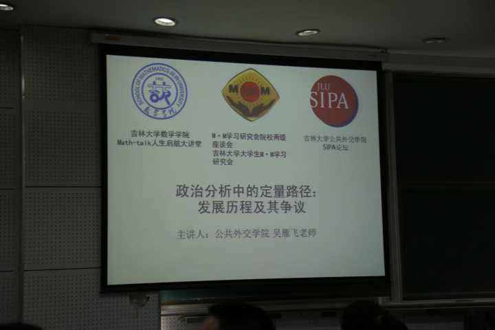 团委社会实践部协办的Math-talk人生启航大讲堂系列讲座暨M•M学习研究会院校两级座谈会暨SIPA论坛系列讲座——政治分析中的定量路径,在逸夫一阶成功举行。本次我们有幸邀请到了公共外交学院的吴雁飞老师为大家讲解政治分析中的定量路径:发展历程及其争议,探讨社会科学定量研究方法的问题。