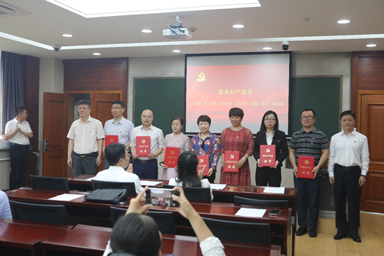 副院长王浩百、党委委员孙毅、纪友清、中心副主任徐向红为获得优秀共产党员的14名同志颁发了荣誉证书。