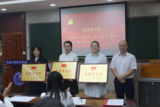 副院长王春朋为获得先进基层党支部的3个党支部颁发了荣誉奖状。
