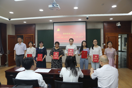 副院长生云鹤、中心副主任张旭利为获得优秀党务工作者的6名同志颁发了荣誉证书。