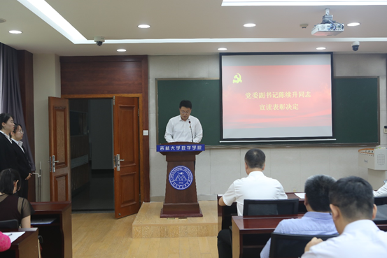 在数学楼第二报告厅召开“两优一先”表彰大会。党委副书记范庆文主持会议。