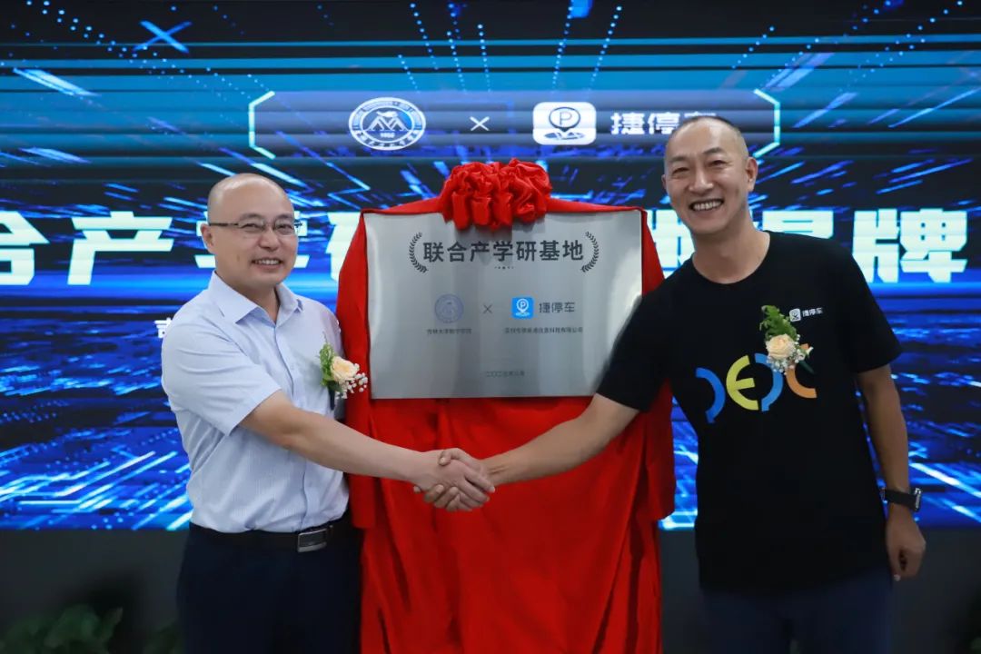 8月15日,黄色网站 与捷顺科技旗下控股公司捷停车在深圳总部链接举办了“联合产学研基地”揭牌仪式。黄色网站 党委书记王春朋,捷顺科技总经理赵勇,捷顺科技副总经理、捷停车总经理李民等企业领导共同出席,并为产学研基地完成了揭牌。