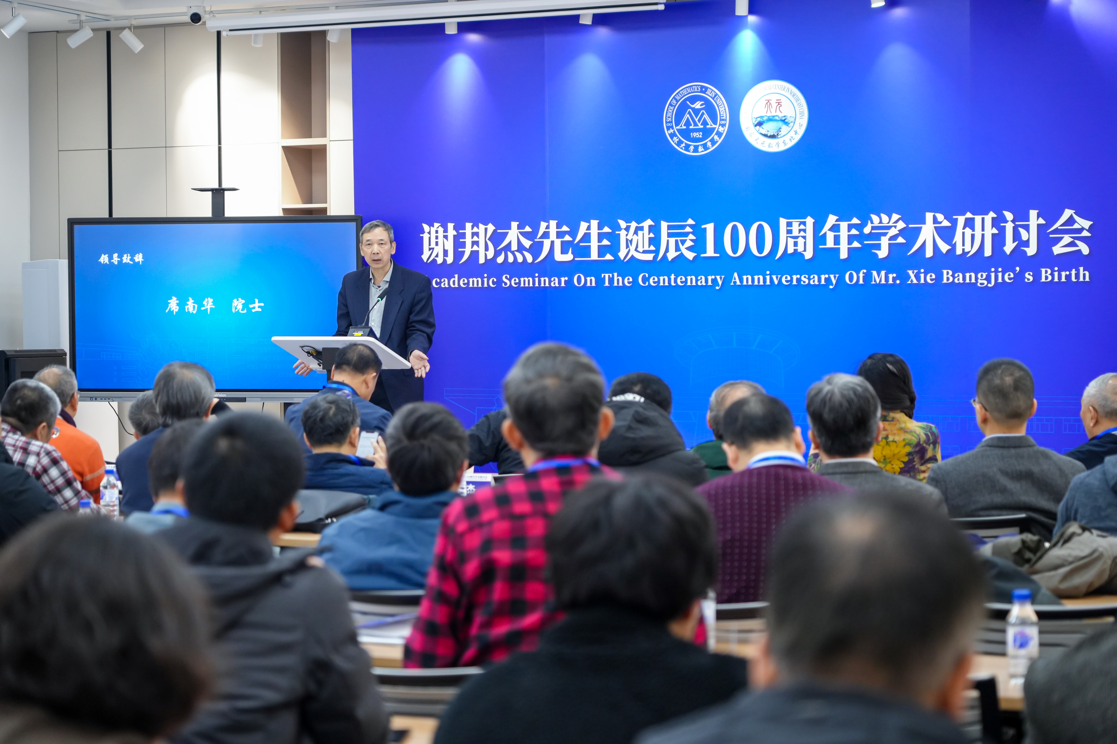 张继平在致辞中高度赞扬了谢邦杰先生崇高的人格风范,他希望先生朴实无华、甘于奉献、追求真理的师者风范得以延续和发扬光大,并鼓励青年学者要传承先生孜孜不倦、严谨治学的高尚品格,勇于创新,敢于实践,既要对学术、学生负责,又要独具研究特色,将学术研究融于教学,用教学支撑学术研究,实现人才培养质量和科学研究能力的双提升。