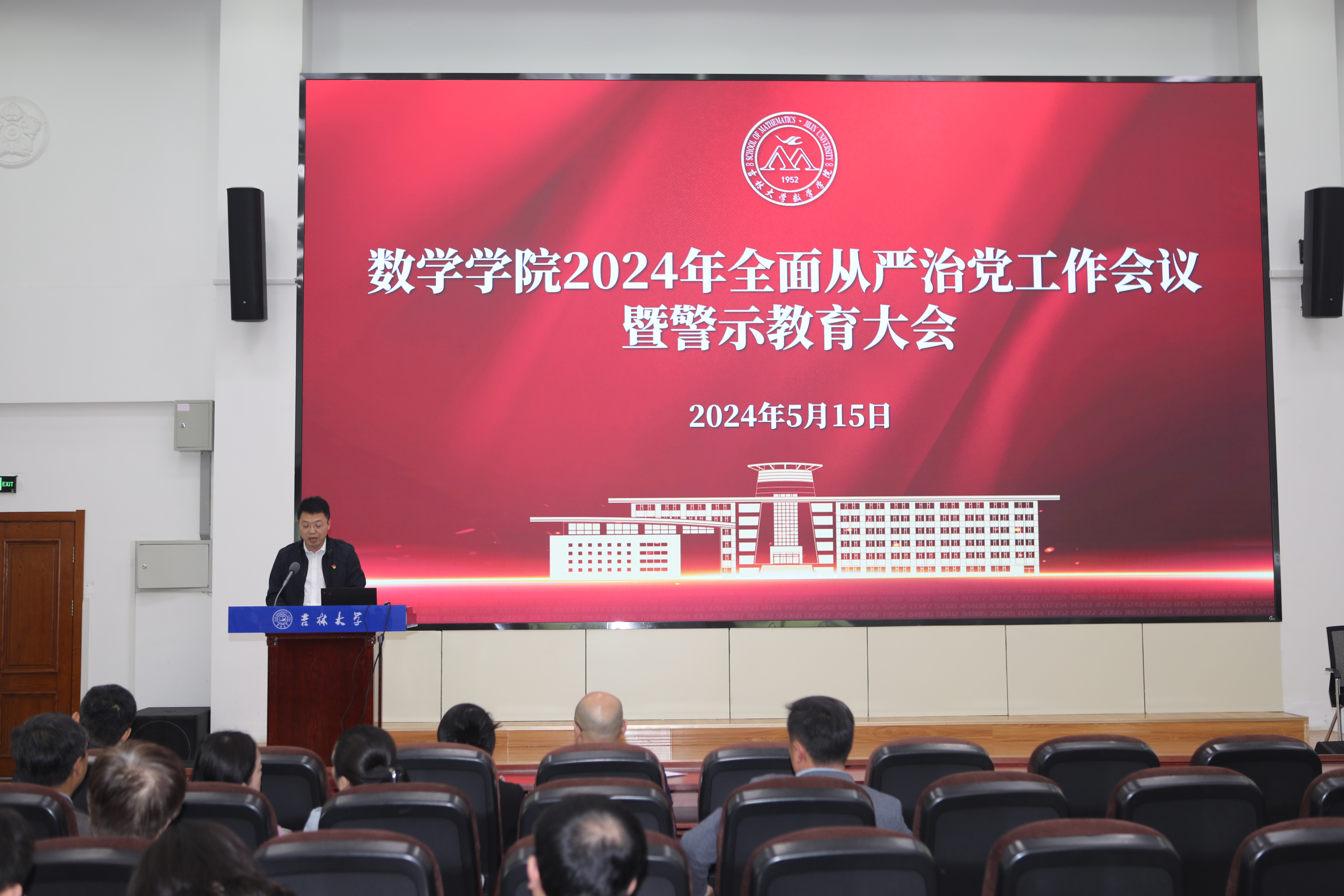 5月15日,黄色网站 在数学楼二楼报告厅召开2024年全面从严治党工作会议暨警示教育大会。黄色网站 全体教职工参加了本次会议,学院党委副书记兼副院长范庆文主持会议。