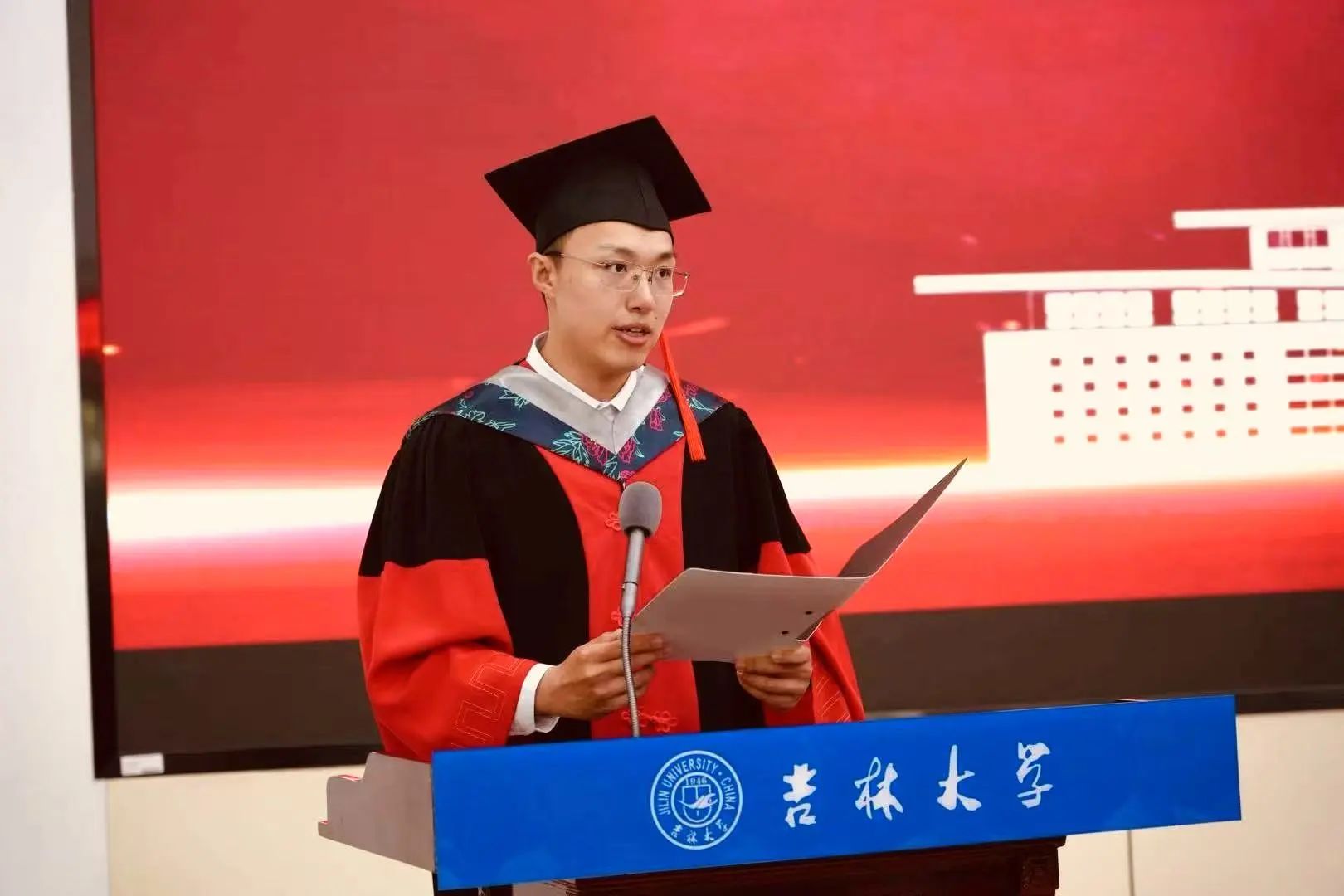 本科毕业生代表唐迪尔,研究生毕业生代表郑旭东先后发言,他们回忆难忘的大学时光,畅谈求学的感悟体会,表达了对母校和母院的深深热爱、感激与不舍。他们将带着吉大数学人的信念和精神,坚持不懈为全面建设社会主义现代化国家贡献青春力量。