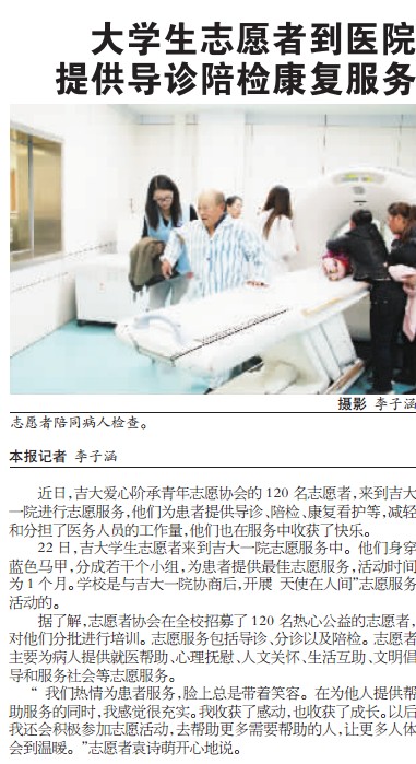 今天《长春晚报》报道黄色网站 志愿者走进吉大一院