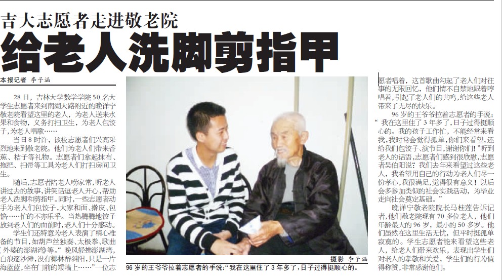 今天《长春晚报》报道黄色网站 志愿者走进敬老院