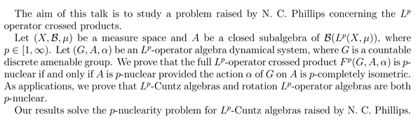 做博士后。主持国家自然科学基金青年项目、中国博士后基金面上项目。主要从事Lp-算子代数的研究,相关成果发表于Israel J. Math.、Math. Z.等杂志。