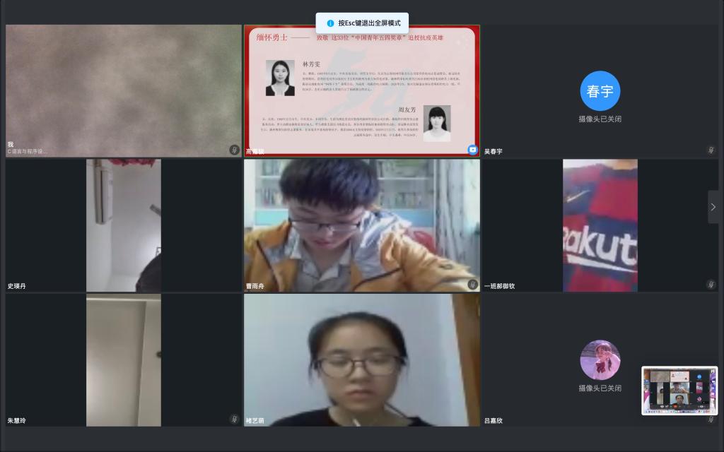 接下来,唐佳琦、胡美冰等同学分享了大家的假期见闻与学期总结。本学期由于疫情影响,虽然不能在学校上课,但通过网课以及各种辅助学习方式,大家依然没有停止学习的脚步。除此之外,大家更因为一个人在家掌握了做饭等生活技能。班会的最后,大家一起抒发了对线下学习的向往,对疫情结束的期盼,与对同学们的想念。