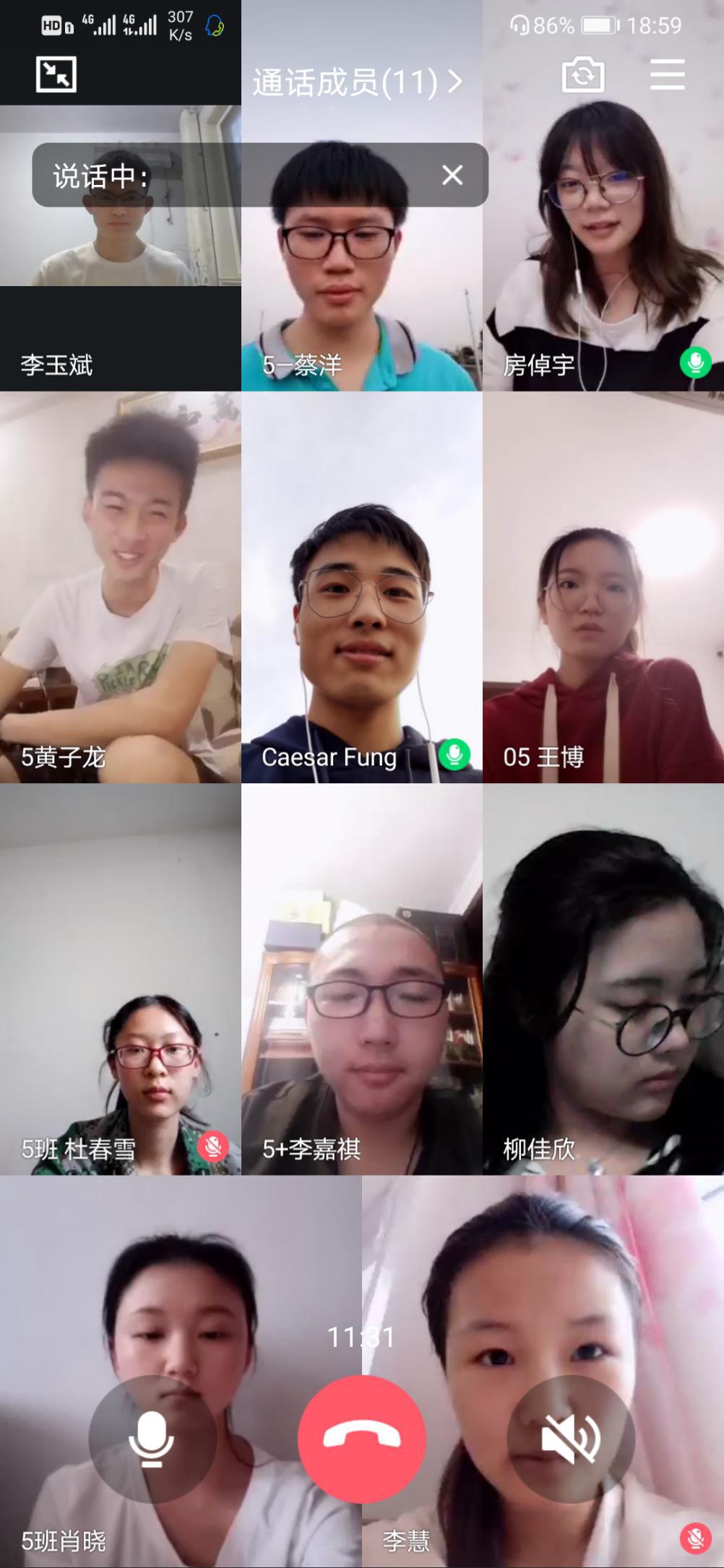 首先,大家谈到了疫情在家学习生活期间学习的先进事迹以及自己的感悟,通过分享先进事迹,同学们了解到社会和他人尤其是青年抗击疫情、为国为人民奉献的事迹,大家都在为一些目标而努力着。其次,同学们谈到了疫情防护的具体措施,特别是疫情严重地区的同学分享了独特的体验以及有效的防护措施。最后,面对这么长的假期,同学们谈到了学习习惯,生活习惯,运动习惯以及不要荒废等话题,谈到了在家学习的优势和劣势,以及生活上的改变。很多同学表示在家可以一边帮外出上班的父母清理家务作为劳动和锻炼一部分,并且多了陪父母、亲手为他们做一桌子菜肴的机会。最后同学们进一步分析了五四青年的精神,五四精神激励着一代又一代的革命青年强烈的爱国热情,今天同样也激励着我们为建设伟大祖国而奋斗。作为新时代青年,大家都互相鼓励不要荒废大好时光,并且互相激励要坚持上述有益的劳动。
