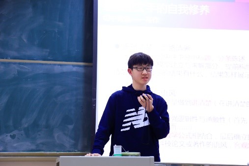 王佳宇同学用幽默风趣的语言,结合着自己学科知识,为我们讲解了美赛审题的步骤,并以海边建沙堡和出海打渔等生动的实例带领大家还原了建模解题的全过程。宋志翔同学以数学教材编排方式为范本,详尽地论述了如何把求美,求实的原则落实到论文写作当中,分享了建模论文写作者自我修养的心得。欧炜庭同学为大家讲解了美赛的组队技巧和备战攻略,分析了各类编程软件、绘图软件、搜索引擎和其他辅助类网站的优缺点。贾林瀚和徐勐同学为我们推荐了许多有用的资源如最新的算法以及各种获取途径。纪量同学为我们结合时下热点,大处着眼,小处着手,从传染病的SI简单模型出发介绍了完善数学模型的方法。而张荣德同学结合这自己三年的参赛学习经历,分析比较了各种算法的具体应用,牢牢抓住数学建模的内在本质,化用《三体》经典名句热情地给出一系列独到的观点和建议。谢子怡同学从写作的方面上分享了诸多细节干货,如latex使用及论文结构的要求,并解答了论文写作时间分配等同学们关心的问题。任奕璇除建模过程中的常规问题外,还着重为大家辅导了数学建模比赛中遇到突发事件时心态调节的方法。