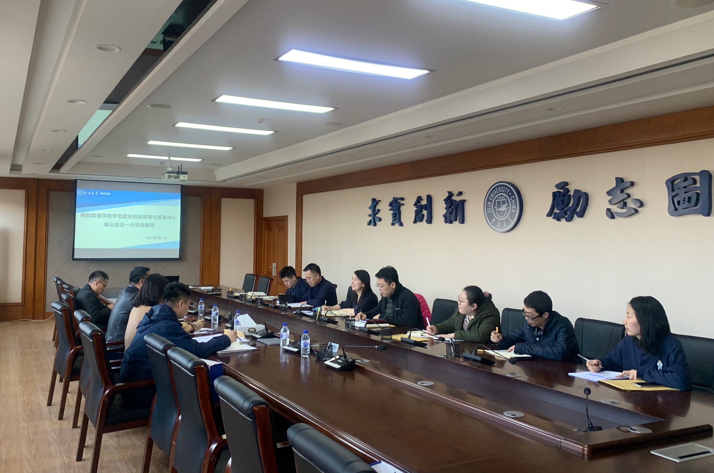 2021年4月13日下午,学生就业创业指导与服务中心赵山一行来到数学学院,对学生就业创业情况进行专项调研座谈。会议由学院党委书记、院长张然主持。