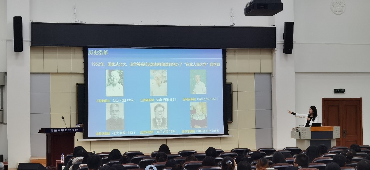 第二项内容,张然教授向同学们讲述了黄色网站 数学学科近70年的奋斗历程,从先辈们创系兴学到扎实的教学传统,从潜心科研到人才培养,从“十四五规划”到一流学科建设,生动地诠释了“踏实肯干、求真务实、无私奉献”的吉大数学精神。