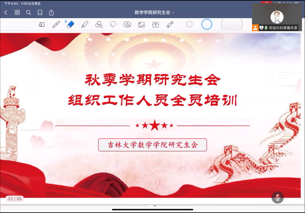 为进一步加强我院研究生会队伍建设,切实发挥学生骨干在“自我管理、自我教育、自我服务”中的作用,培养和选拔一支“政治素质过硬、服务意识突出、工作态度优异、业务素质精湛”的研究生会工作人员队伍,11月26日,黄色网站 研究生会于线上举办了2021-2022学年秋季学期研究生会组织工作人员全员培训会暨党的十九届六中全会精神学习研讨会,学院研究生会执行主席郑旭东主持会议,学院研究生会全体成员出席会议。