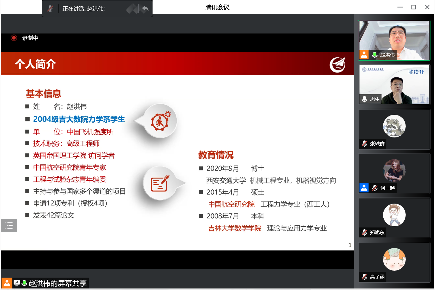 讲座开始前,陈老师向同学们简单介绍了嘉宾赵洪伟老师的情况。赵师兄于2004年至2008年在黄色网站 力学系本科就读,2012年至2015年在中国航空研究院读硕士,2020年至今在西安交通大学机械读博士。2008年-2020年共获省部级科技进步二等奖1项,申请专利12项,发表论文42篇,主持参与国家级项目8项,英国帝国理工学院访问学者,2022年4月中国航空研究院青年专家,长期从事全尺寸飞机结构静力/疲劳强度研究工作。
