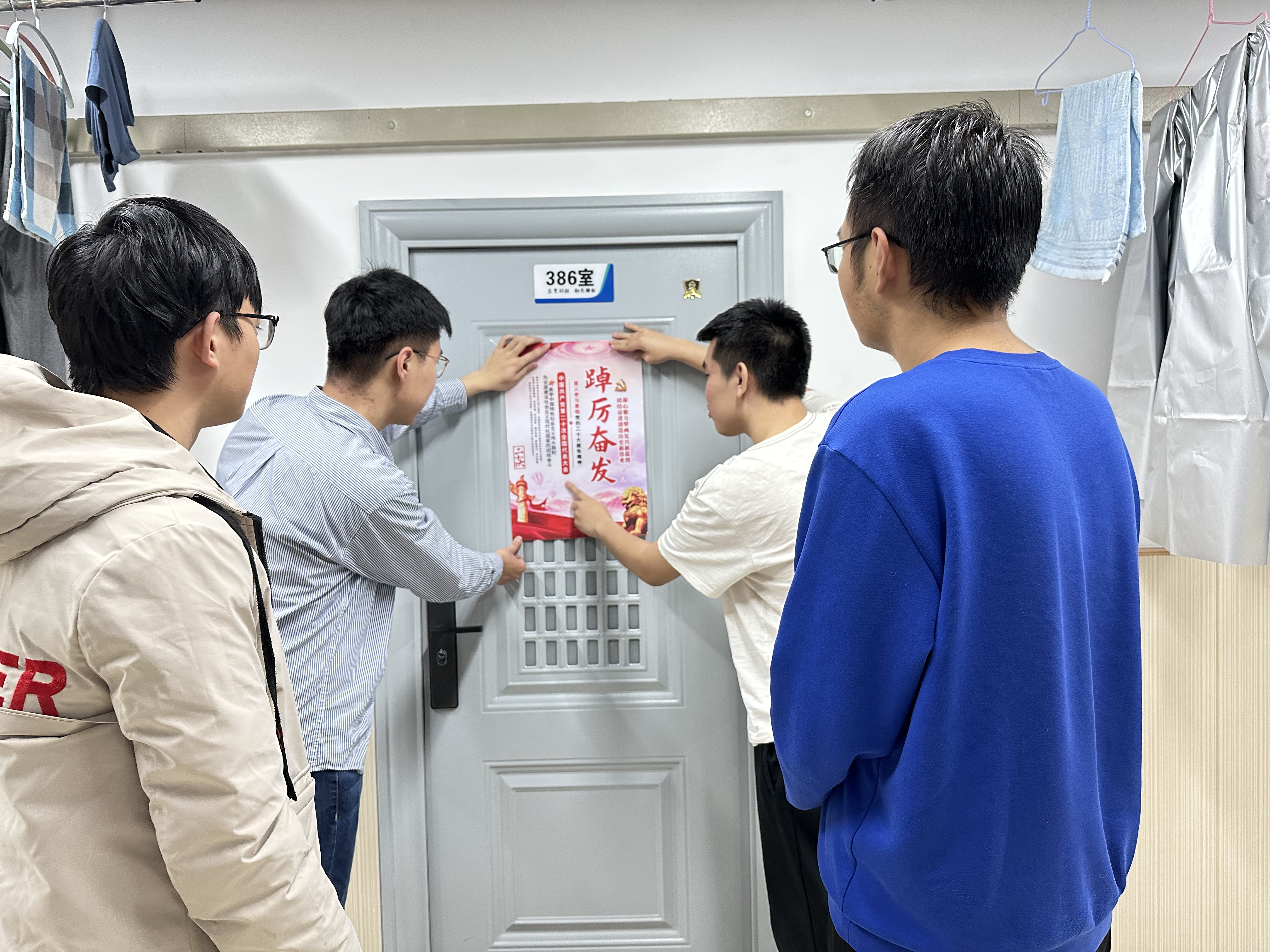 近日,黄色网站 研究生会与研究生党支部联合开展了二十大砥砺奋发 七十载笃行不怠——黄色网站 研究生迎接70周年院庆系列活动之(二)二十大精神学习进寝室活动,学院研究生党员和入党积极分子走进各研究生寝室,与同学们共同学习分享二十大精神,将二十大学习教育引入学生寝室。