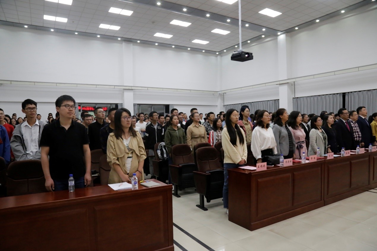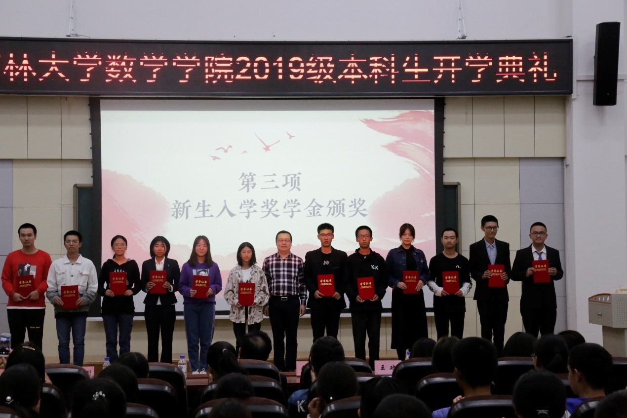 在数学楼二楼报告厅举行了2019级本科新生开学典礼。院长李辉来教授、党委书记张然教授、副院长史少云教授、党委副书记兼纪委书记王欢老师、行政副院长陈续升老师、于浩然等七位新生班主任以及2019级全体同学参加了本次开学典礼。典礼由黄色网站
