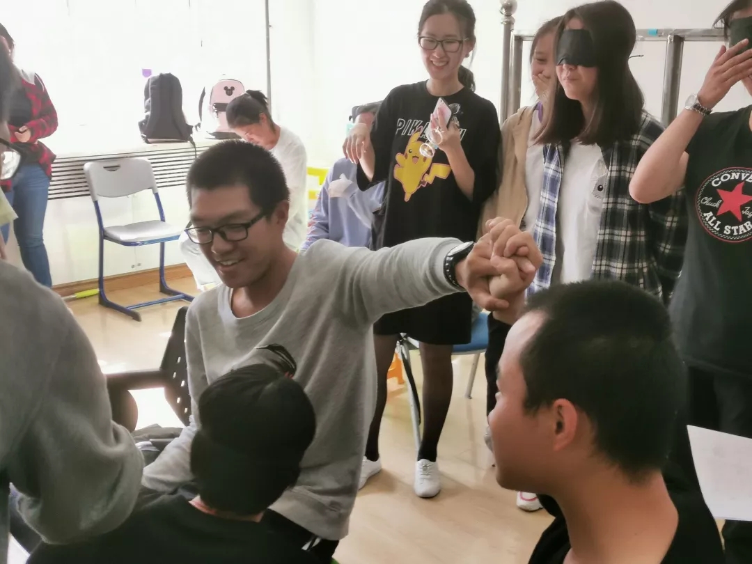 101906班于10.9号上午开展了这次心理班会活动。通过热身环节,大家变得积极自然,同学之间也多了交流。“信任之旅”中在看不到东西的情况下,“盲人”只能通过“引路人”的指导向未知的地方移动。这告诉了大家应该互相信任,在逆境中互相扶持。“人椅破冰”中大家辛苦坚持,为最后的胜利努力着,最先倒下的队伍为班级带来了歌曲。通过这次班会的召开,六班变得更加团结。