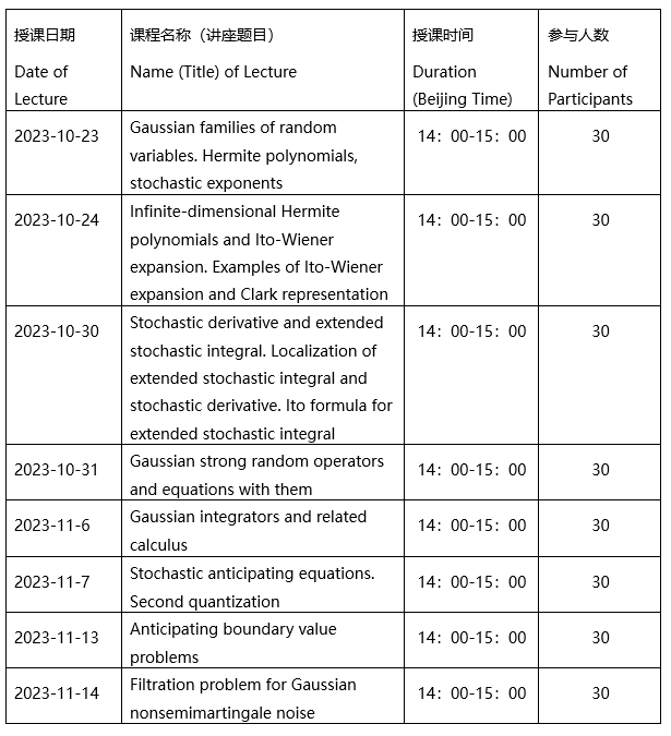 This course is devoted to the stochastic anticipating equations with the extended stochastic integral with respect to the Gaussian processes of a special type. Professor Andrey will give students some time to understand the knowledge and give some small questions about the lectures.
