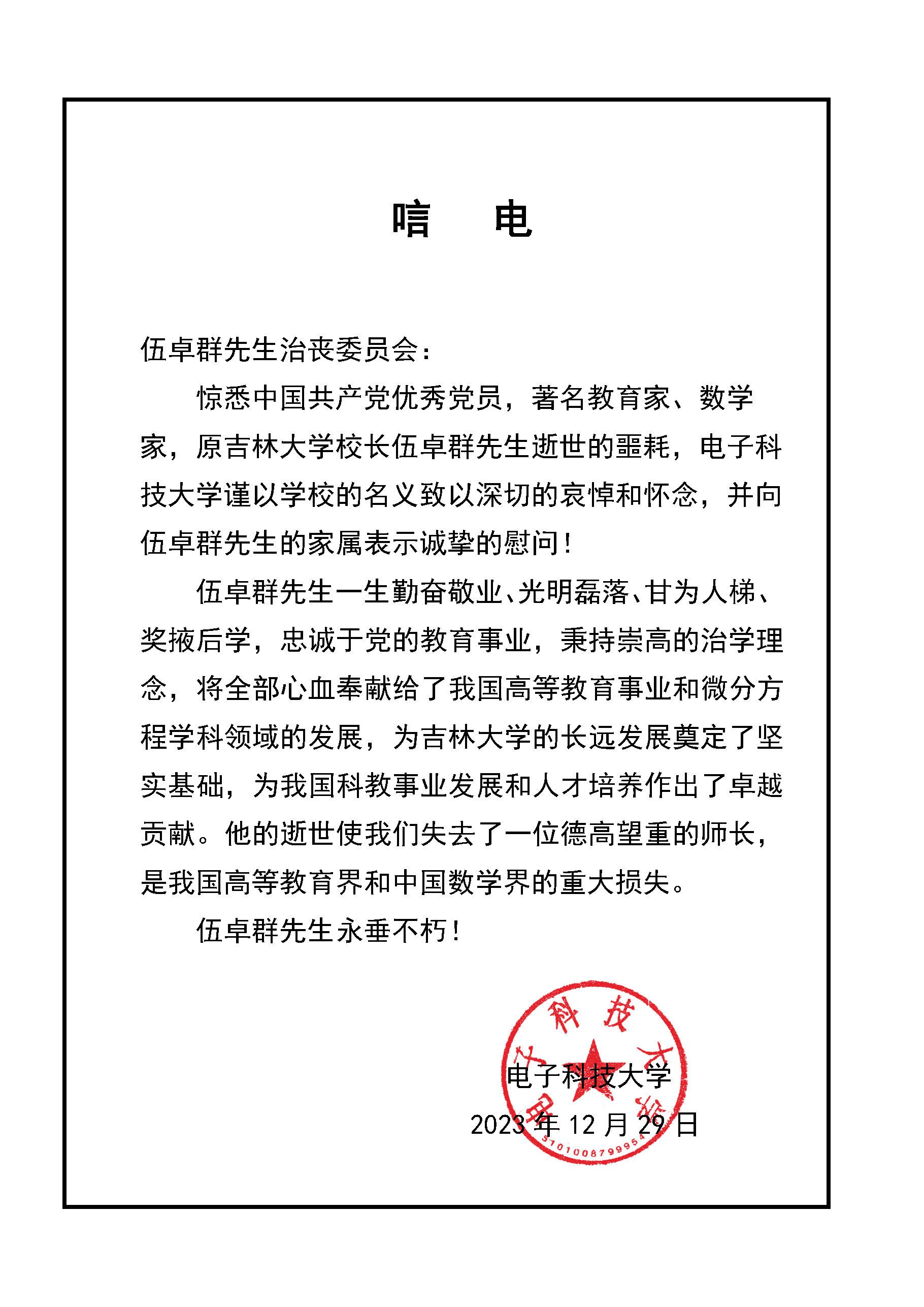 中国科学技术大学唁电
